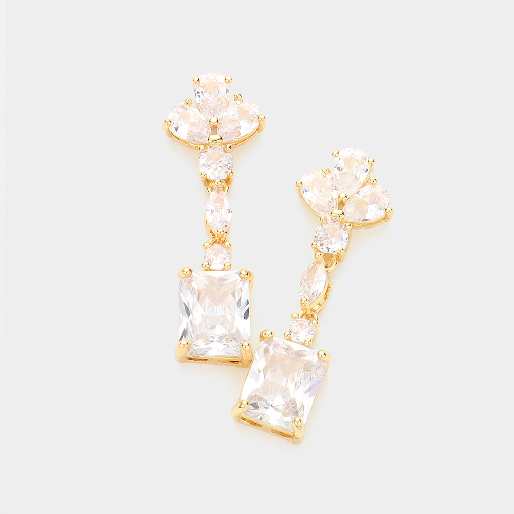 CZ Multi Stone Link Dangle Evening Earrings
