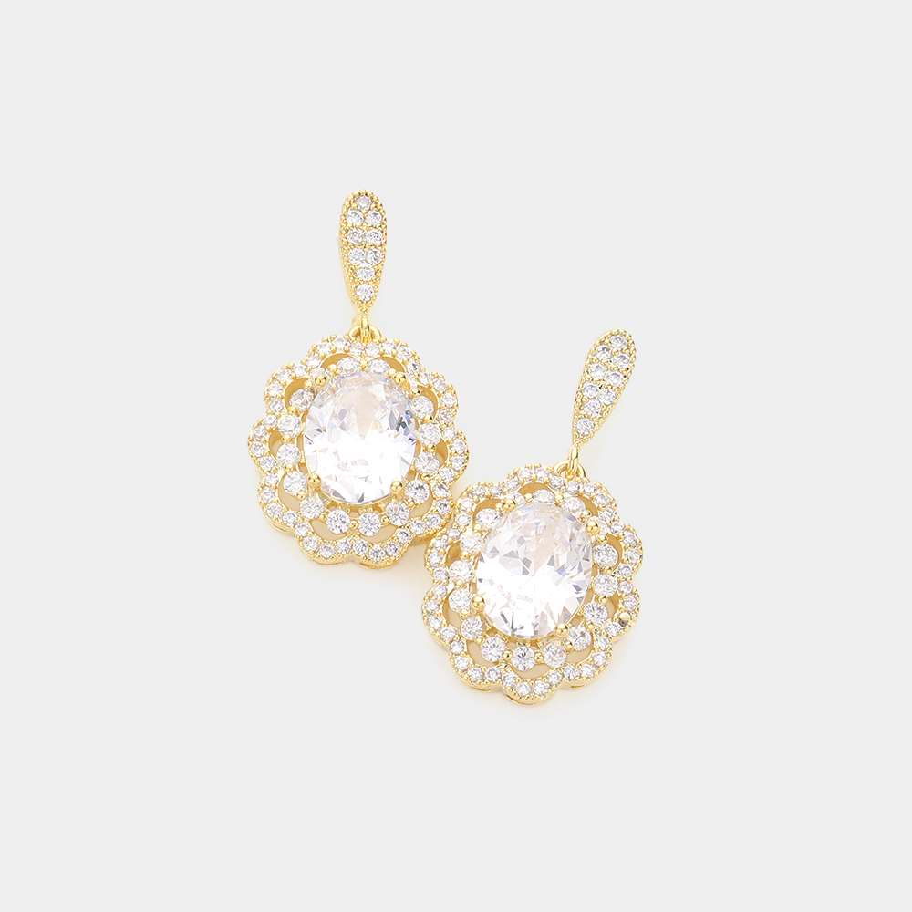 Rectangular Glass Stone Cluster Dangle Evening Earrings