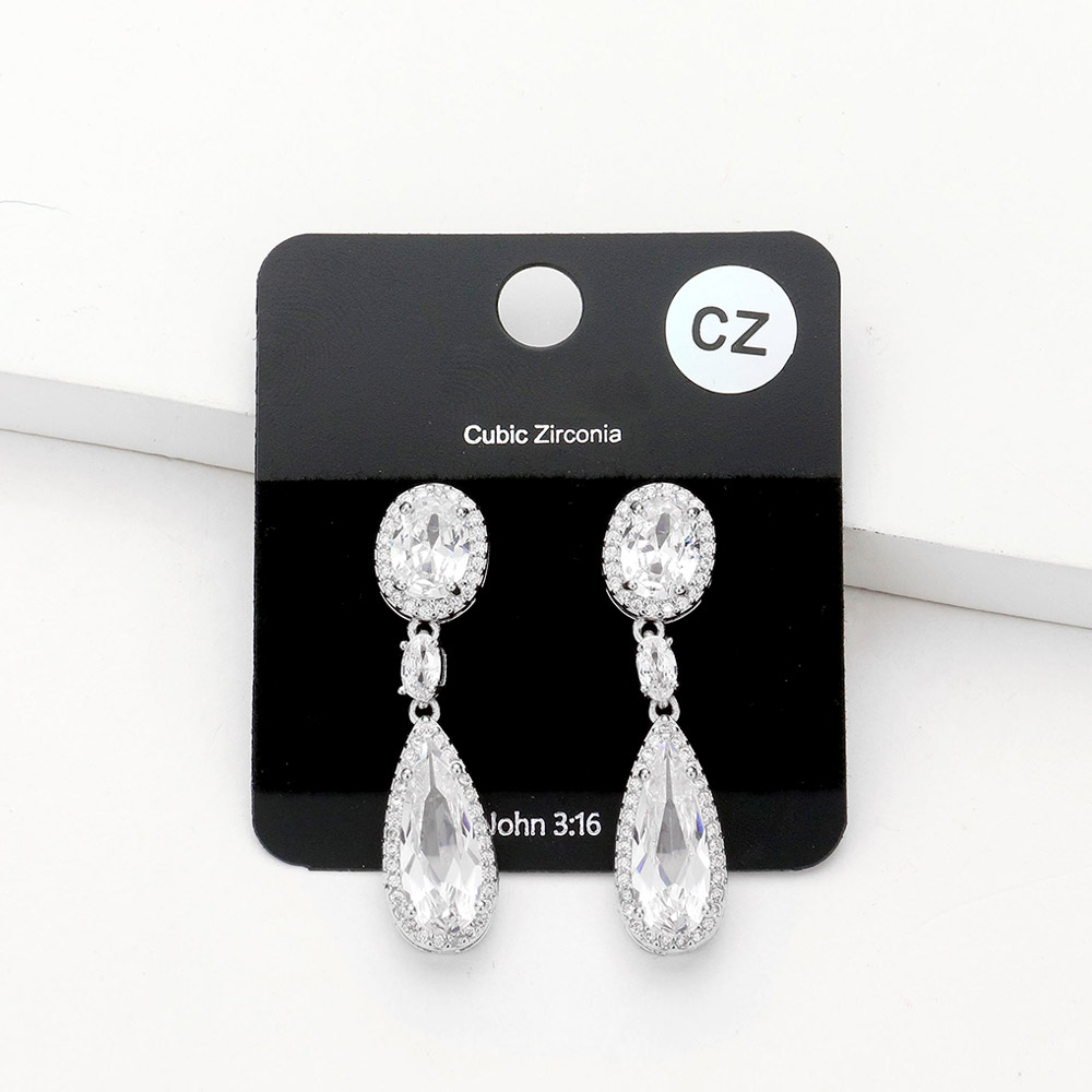 CZ Oval Teardrop Link Dangle Evening Earrings