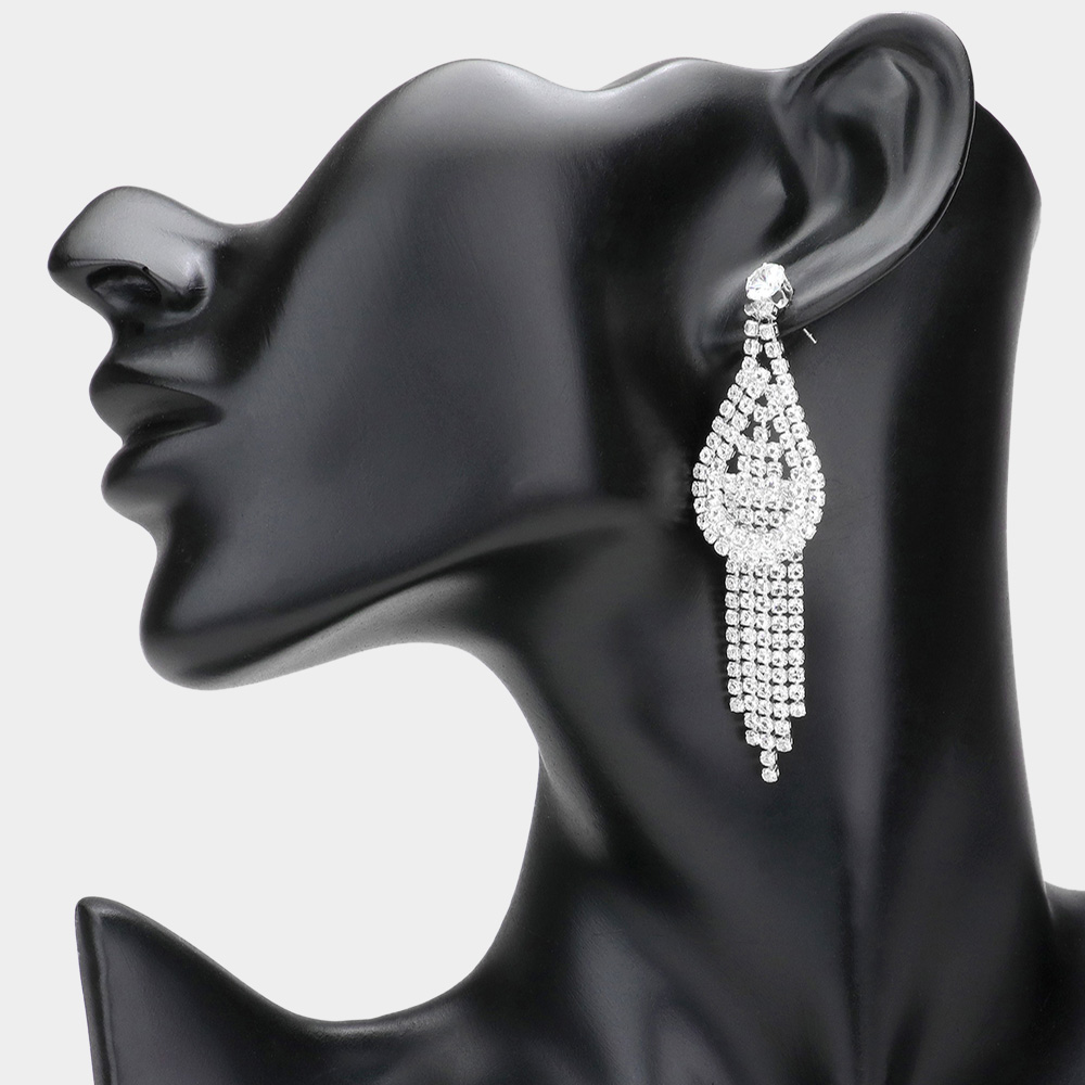 CZ Pave Teardrop Accented Fringe Dangle Evening Earrings
