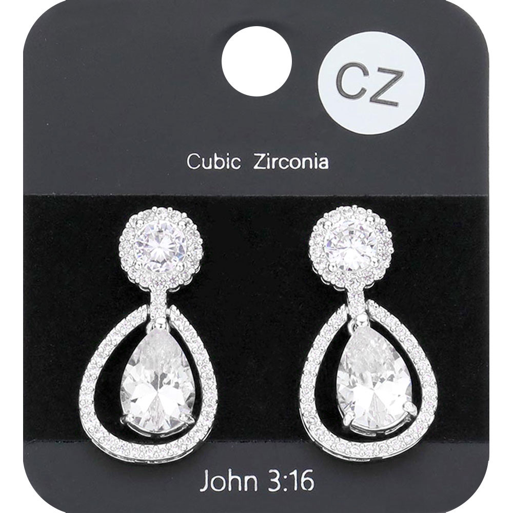 CZ Round Teardrop Stone Link Dangle Evening Earrings