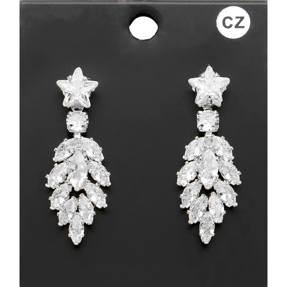 CZ Star Stone Pointed Marquise Round Stone Chandelier Earrings