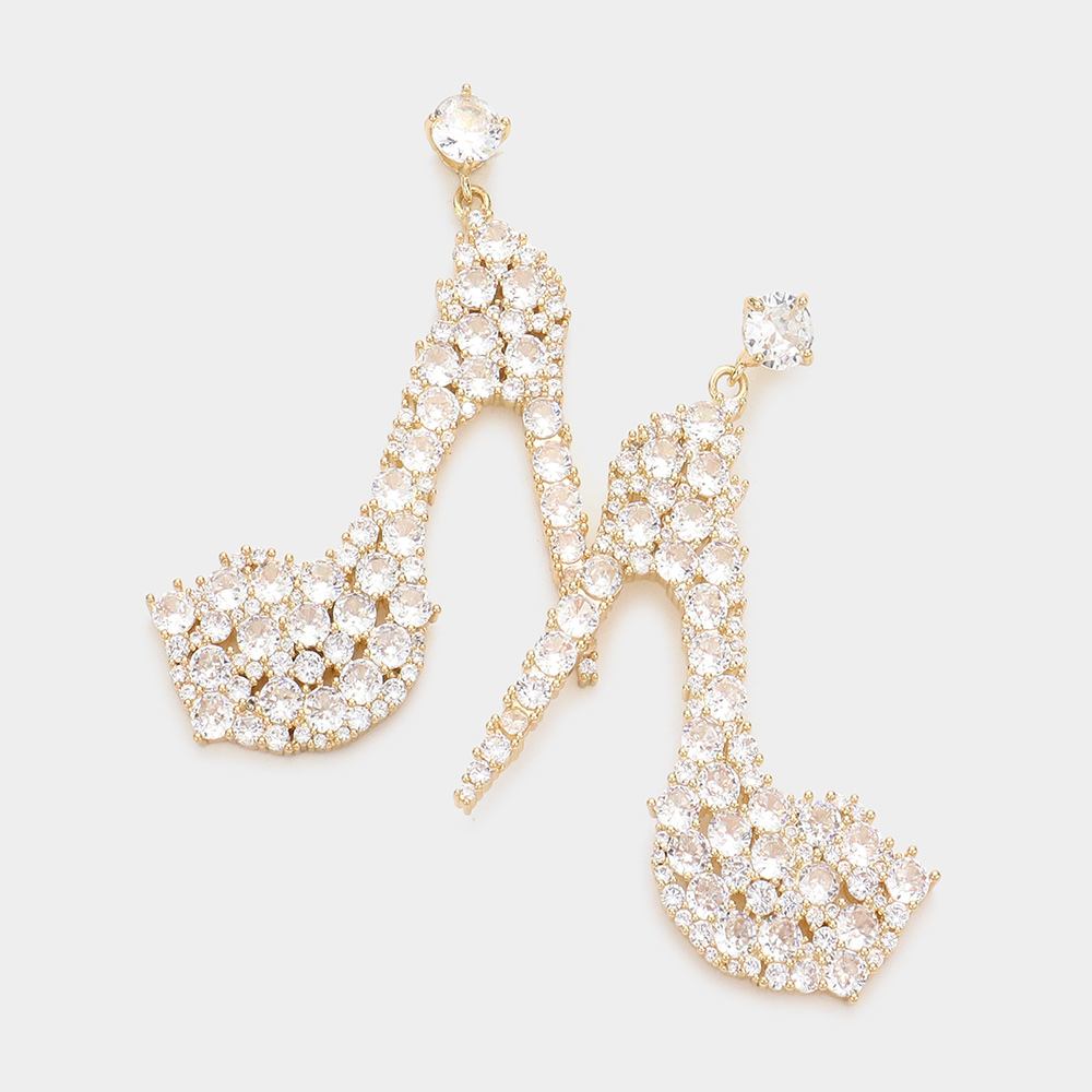 Rhinestone Embellished Flower Accent Glam High Heel Lipstick Pin Brooch