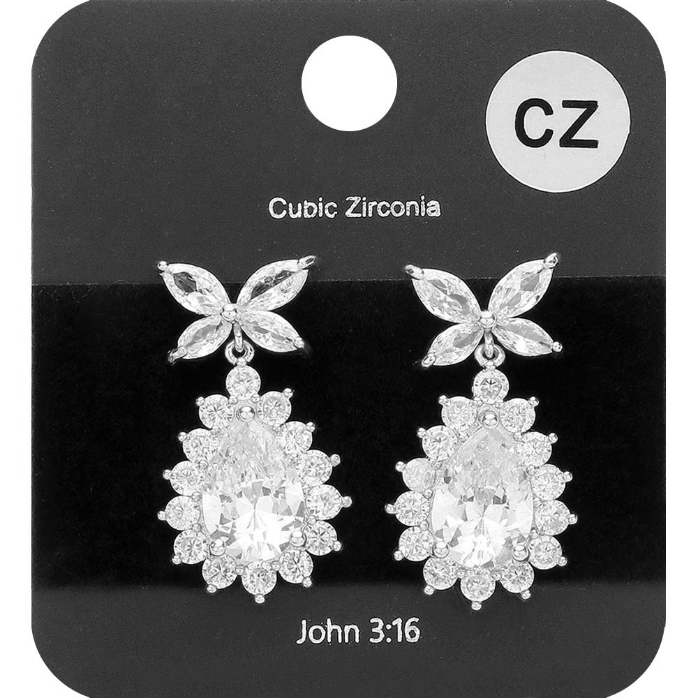 CZ Stone Butterfly Teardrop Dangle Evening Earrings