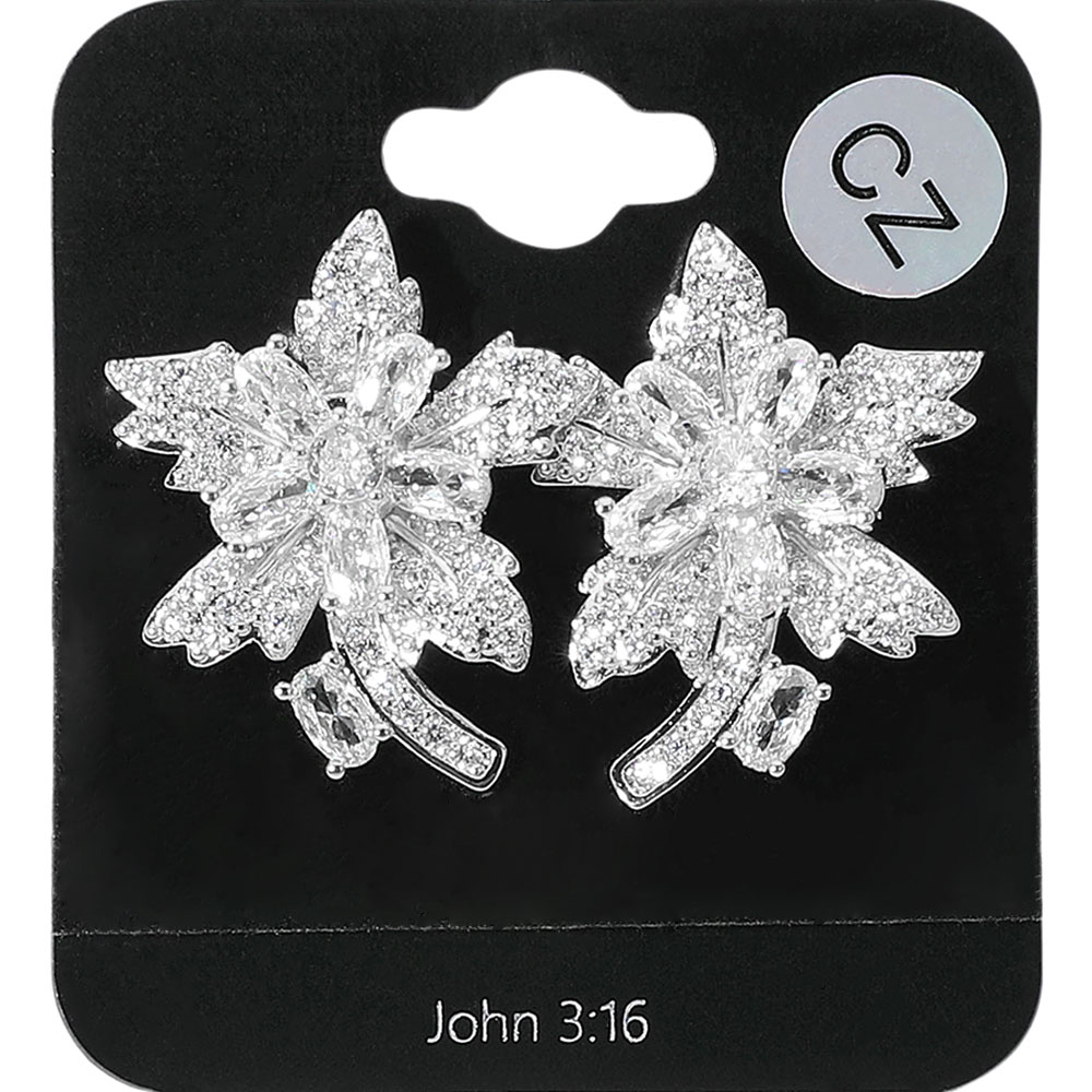 CZ Stone Embellished Flower Evening Earrings