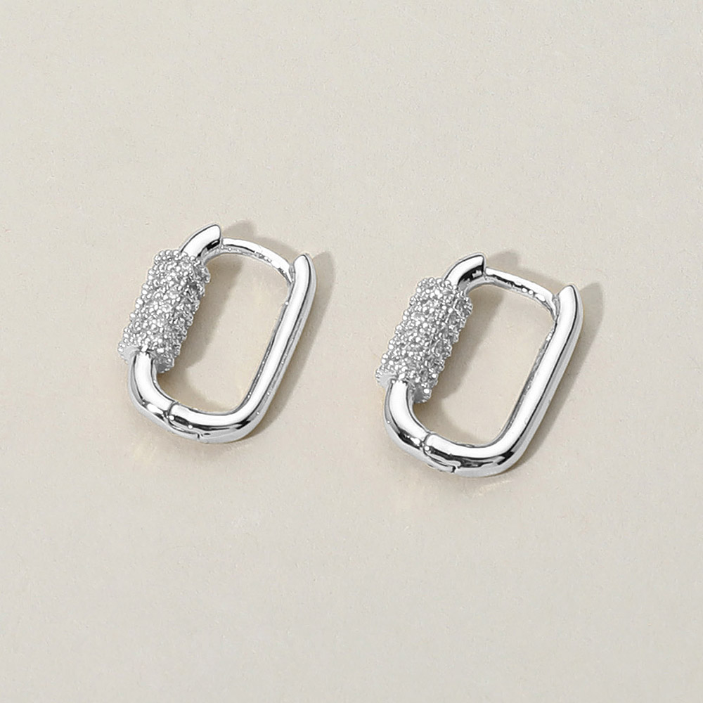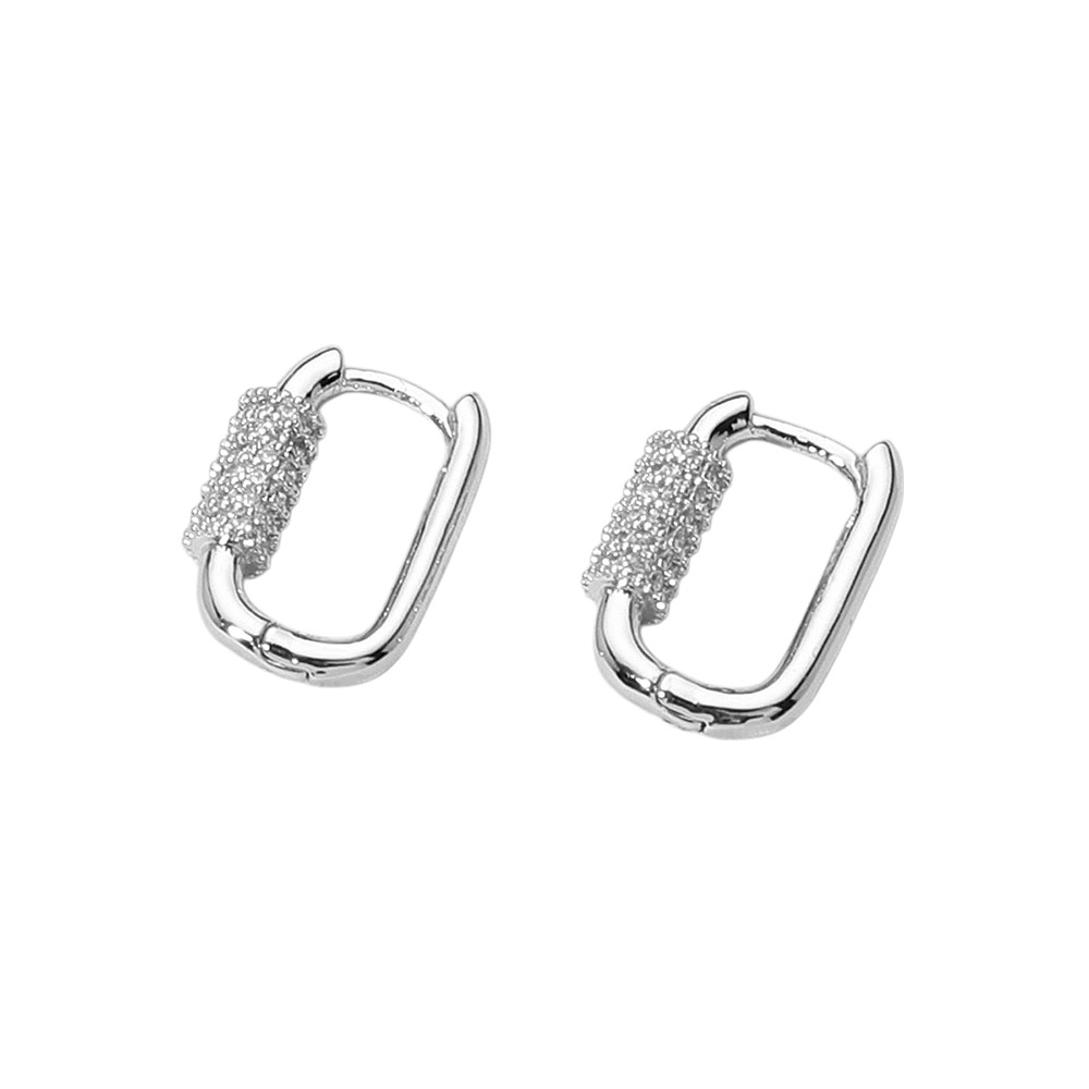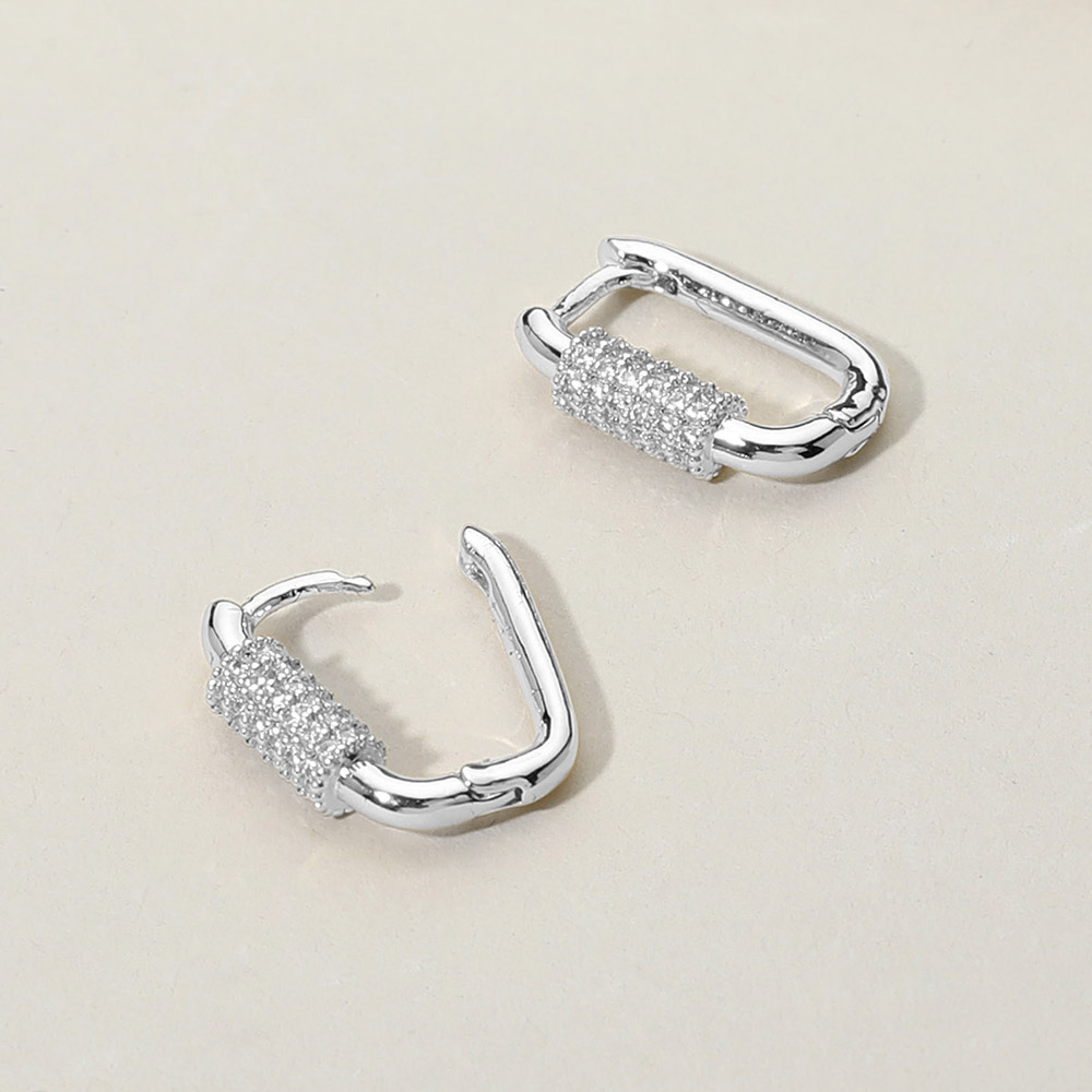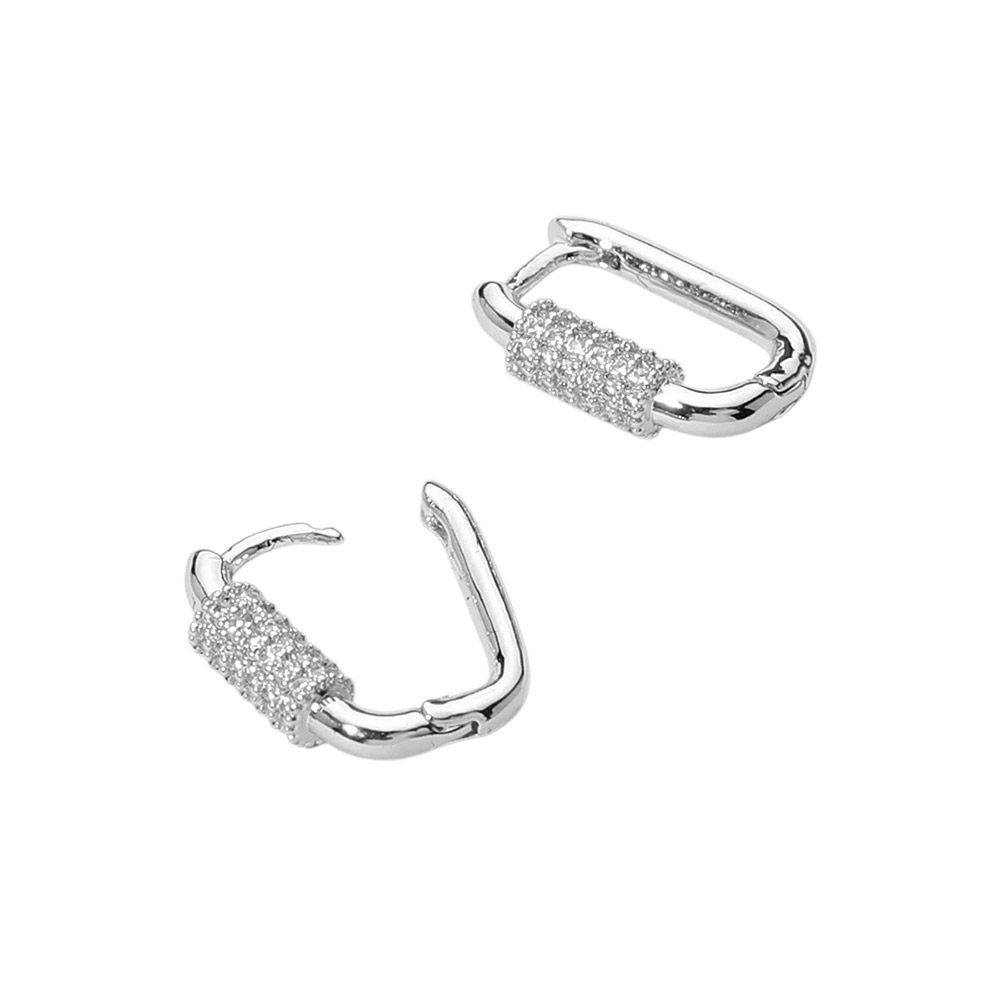 CZ Stone Paved Carabiner Huggie Hoop Earrings
