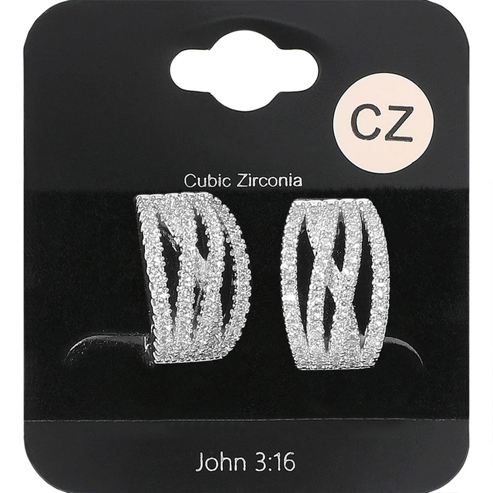 CZ Stone Paved Crisscross Dome Evening Earrings