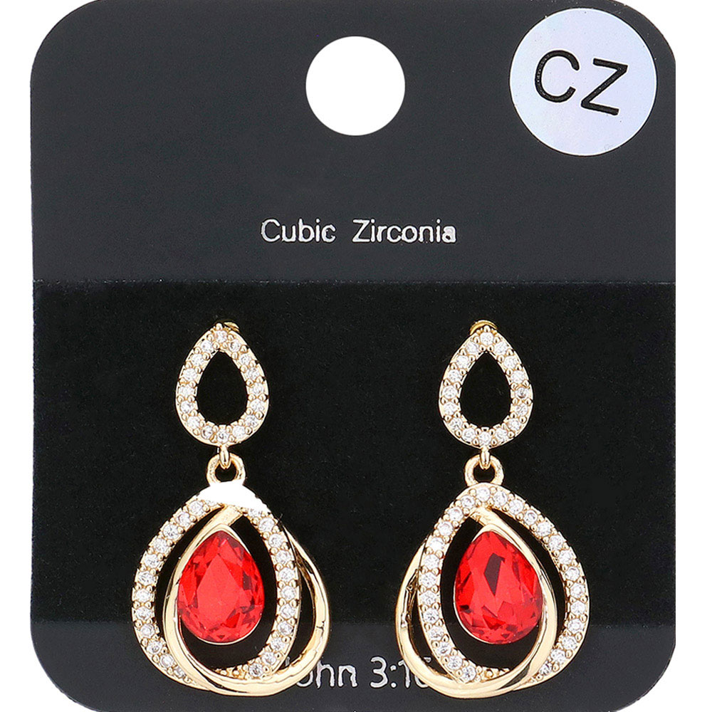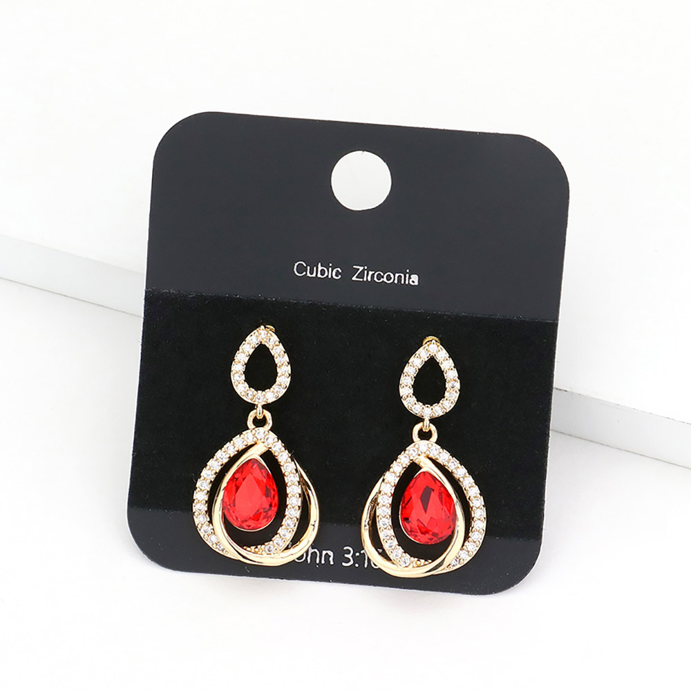 CZ Stone Paved Teardrop Stone Dangle Evening Earrings