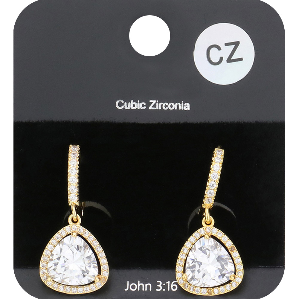 CZ Stone Triangle Evening Huggie Earrings