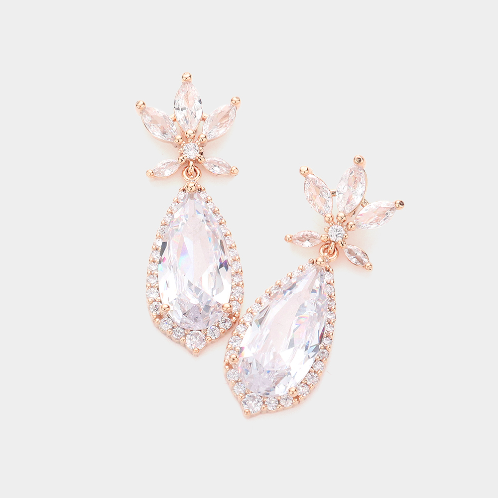 Marquise Glass Crystal Oval Cluster Vine Evening Earrings