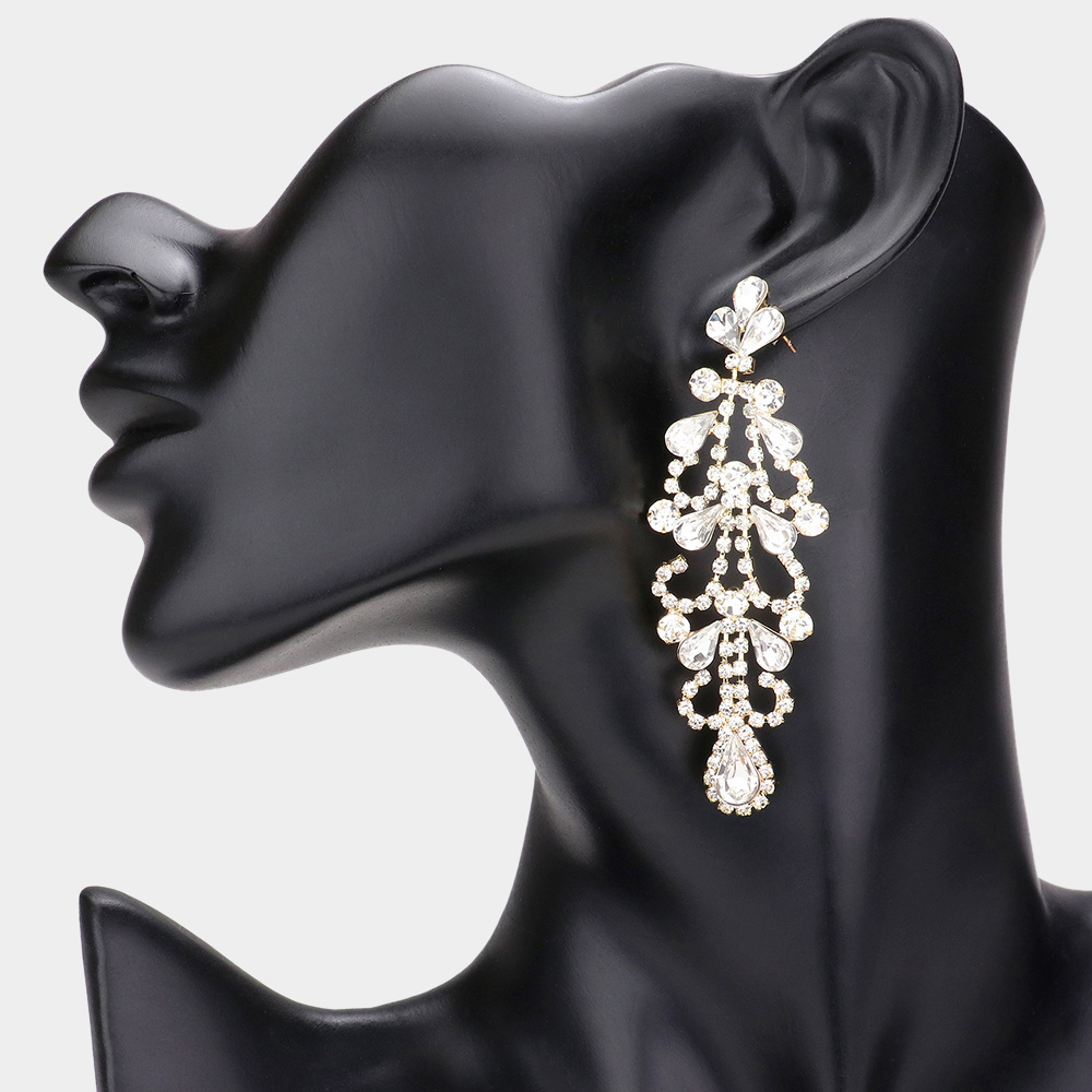 Teardrop Stone Cluster Dangle Marquise Stone Cluster Embellished Drop Evening Earrings