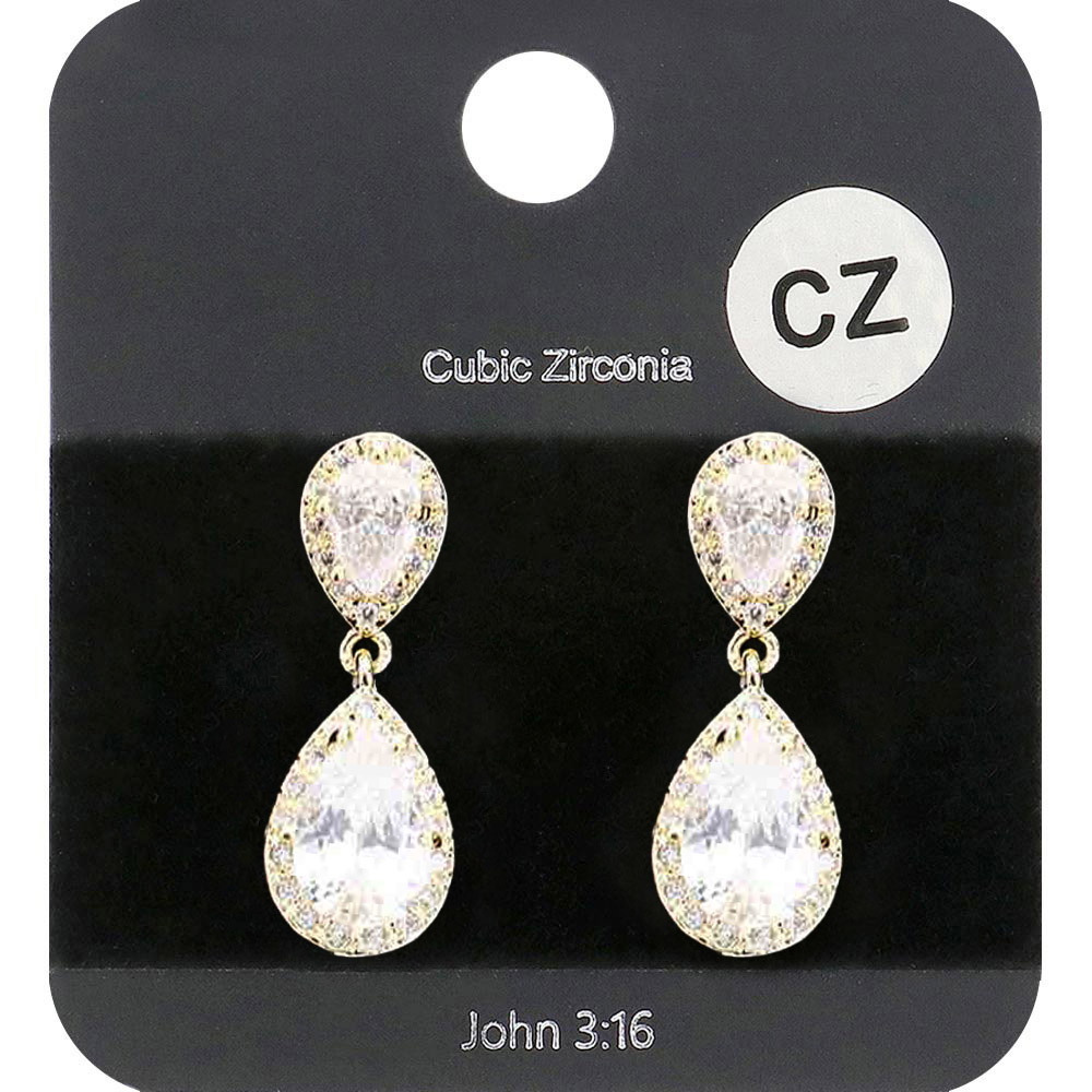 Details • Size : 0.25" X 0.8" • Post Back • Dazzling double teardrop dangle earrings with cubic zirconia accents for a radiant sparkle. Perfect for special occasions, these elegant drops bring timeless sophistication and shine to your evening look. • CZ Cubic Zirconia