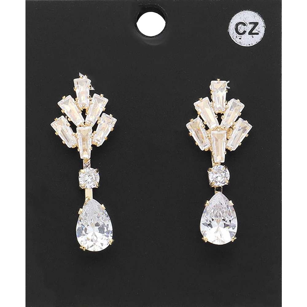 CZ Teardrop Stone Pointed Dangle Evening Earrings