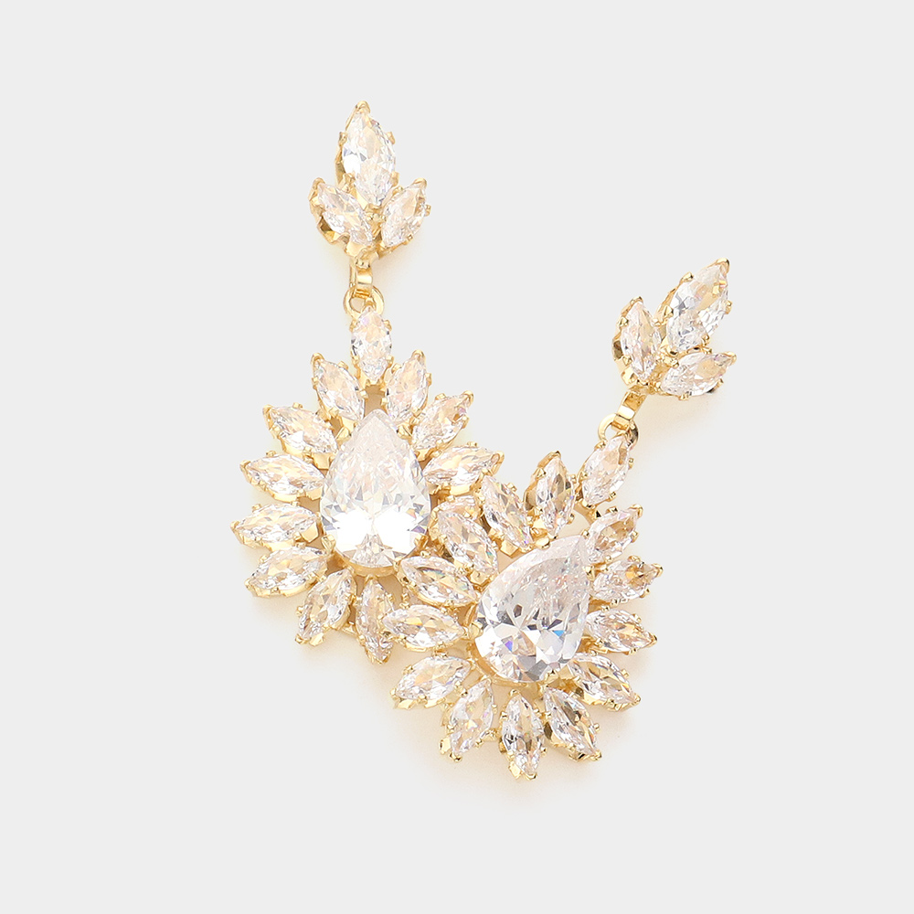 CZ Teardrop Stone Pointed Marquise Stone Embellished Dangle Evening Earrings
