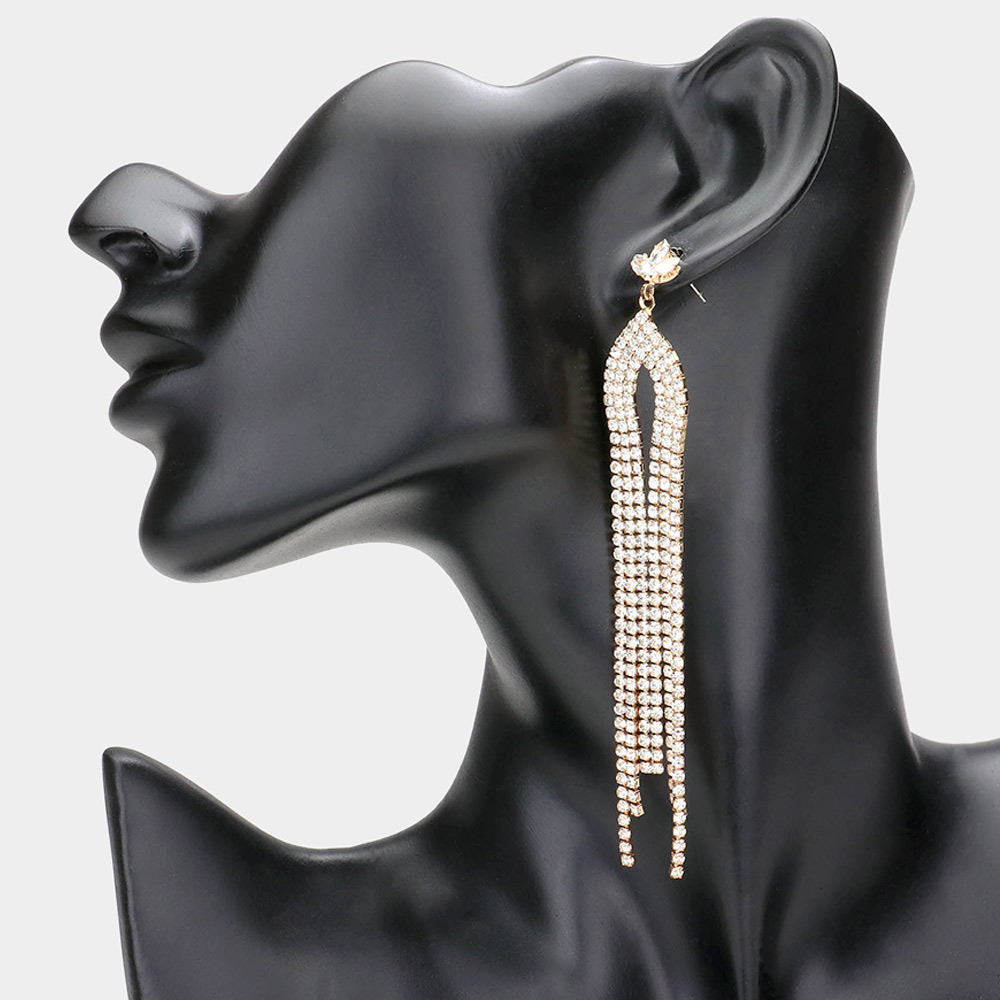 CZ Triple Marquise Pointed Fringe Dangle Evening Earrings