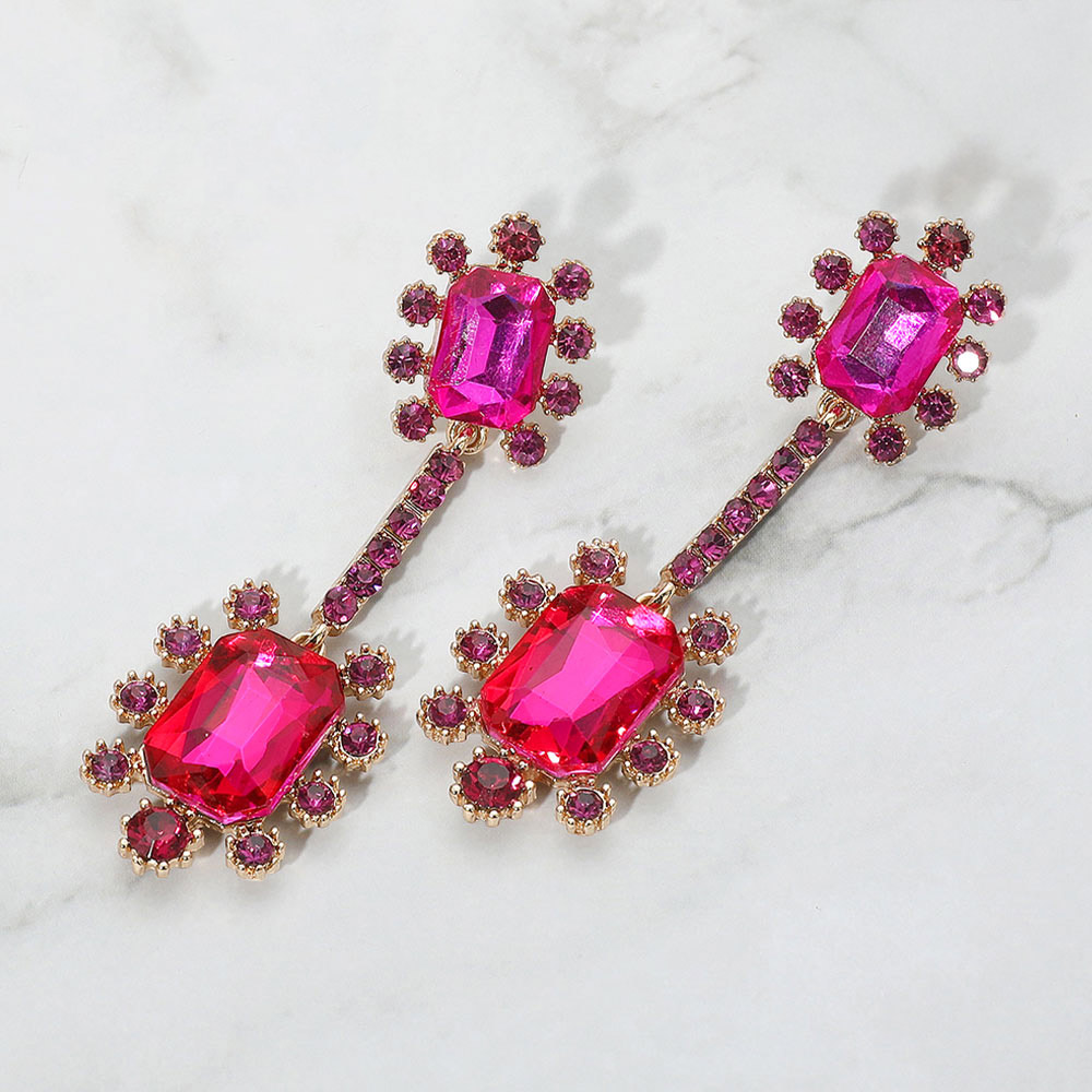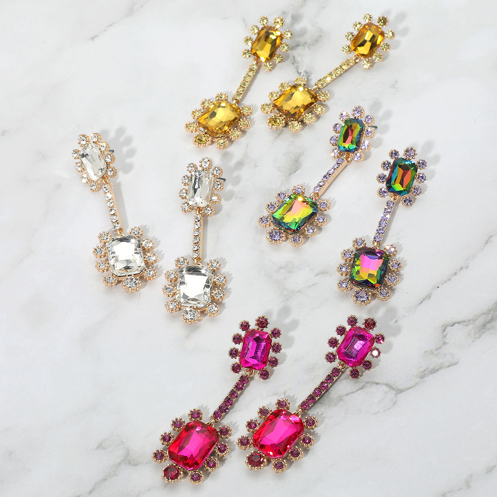 Details • Size : 0.8" X 3" • Post Back • Sophisticated drop earrings featuring radiant crystals and delicate floral-inspired halos. A timeless accessory perfect for weddings, evening events, or formal wear. • Lead and Nickel Compliant