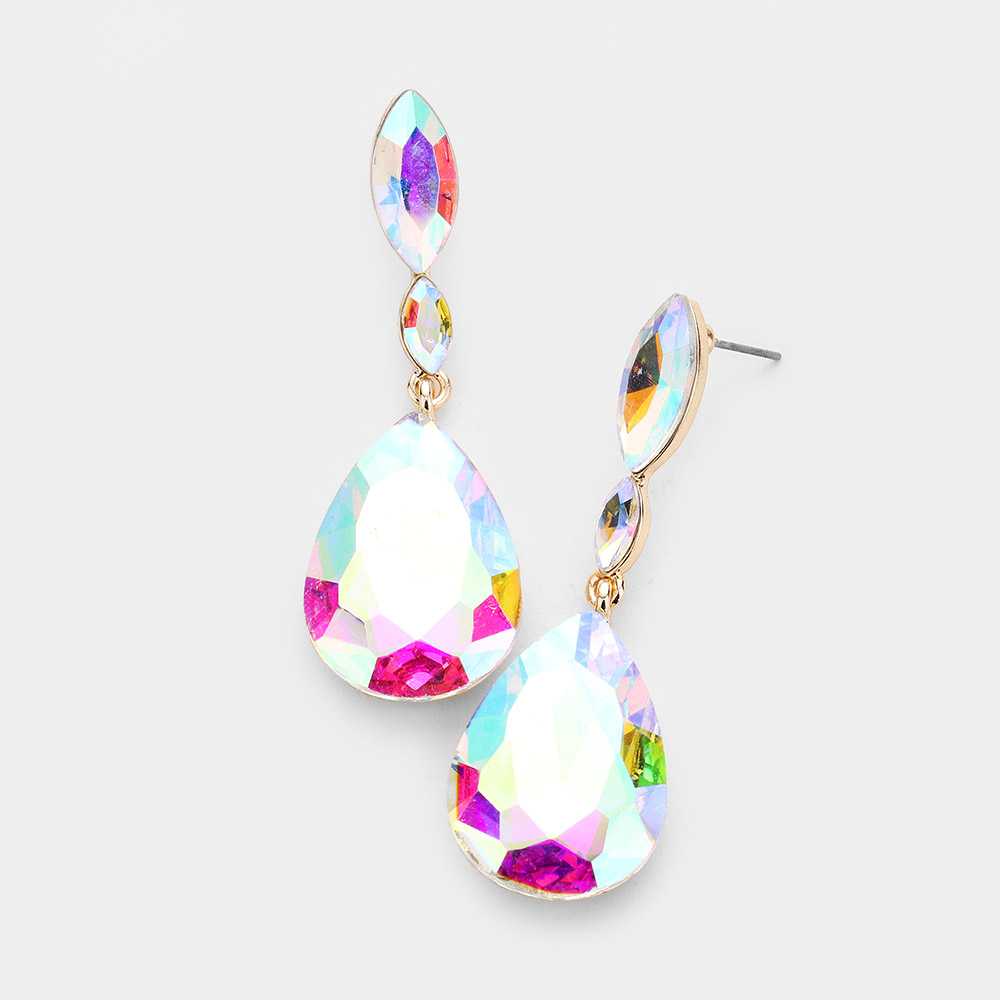 Double Marquise Stone Teardrop Link Dangle Evening Earrings