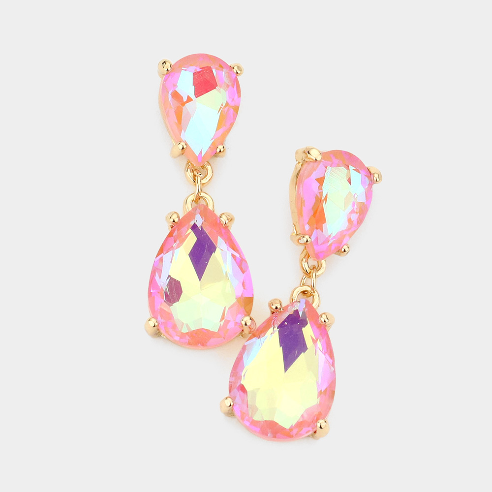 • Chic double teardrop dangle earrings with faceted stones that reflect light with every movement. A versatile accessory for both casual and dressy outfits, adding timeless charm to any style.