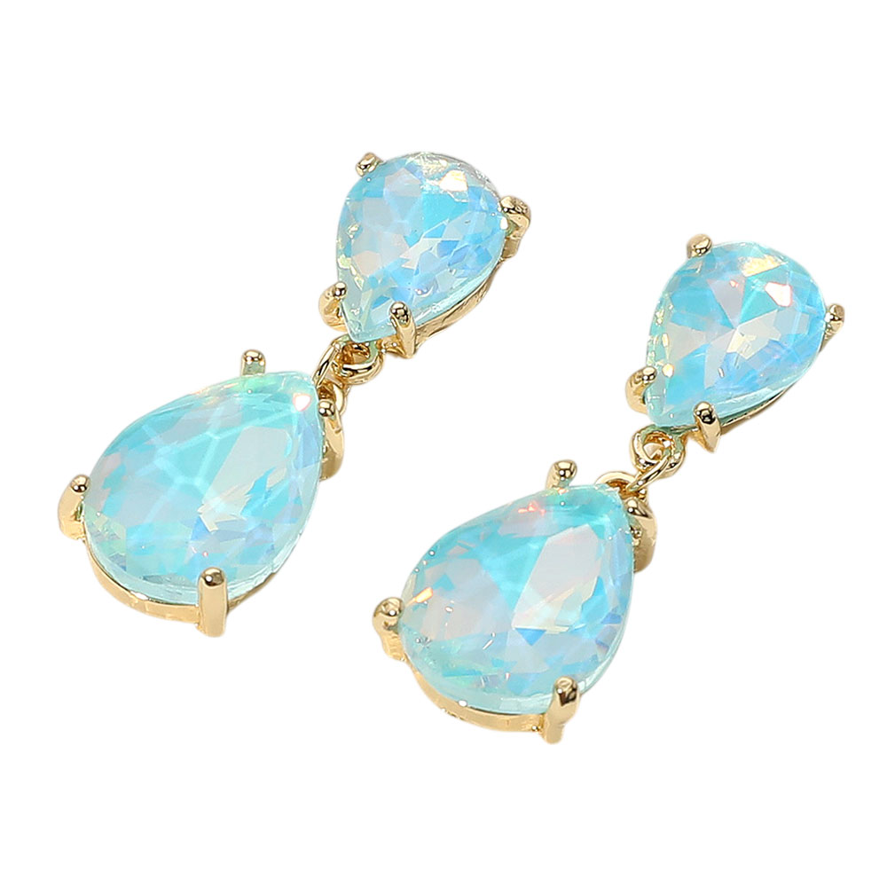 • Elegant double teardrop dangle earrings with shimmering faceted stones. A timeless design that catches the light beautifully, perfect for adding a touch of glam to formal or evening looks.