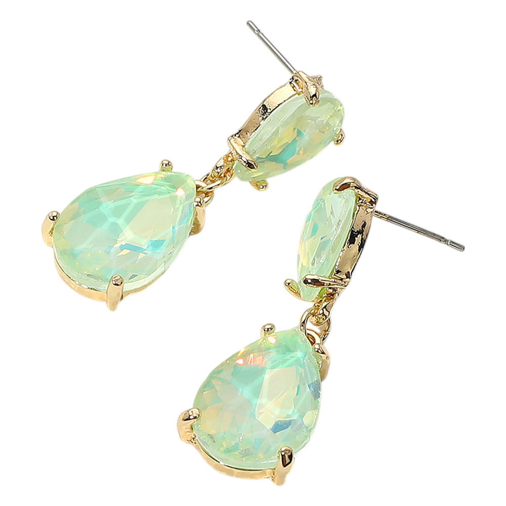 • Elegant double teardrop dangle earrings with shimmering faceted stones. A timeless design that catches the light beautifully, perfect for adding a touch of glam to formal or evening looks.