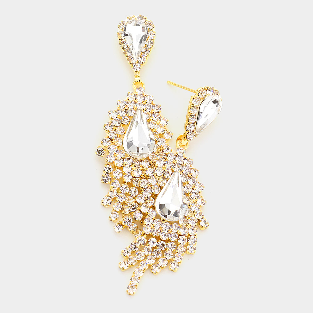 Double Teardrop Stone Accented Dangle Evening Earrings