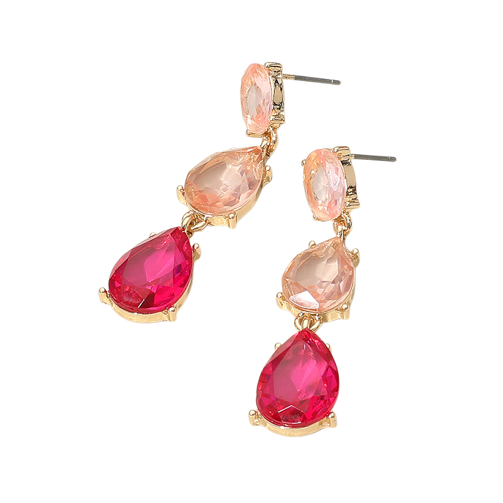 • Elegant drop earrings featuring triple teardrop crystal stones in a gold-tone setting. Perfect for weddings, parties, or everyday glam with timeless sophistication and sparkle.