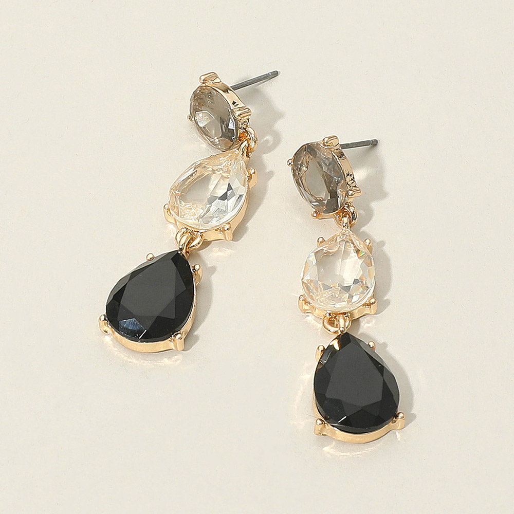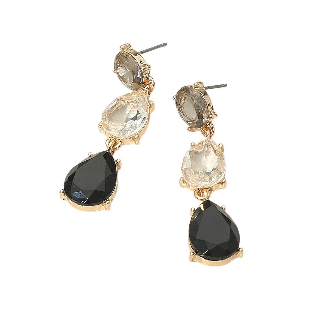 • Elegant drop earrings featuring triple teardrop crystal stones in a gold-tone setting. Perfect for weddings, parties, or everyday glam with timeless sophistication and sparkle.