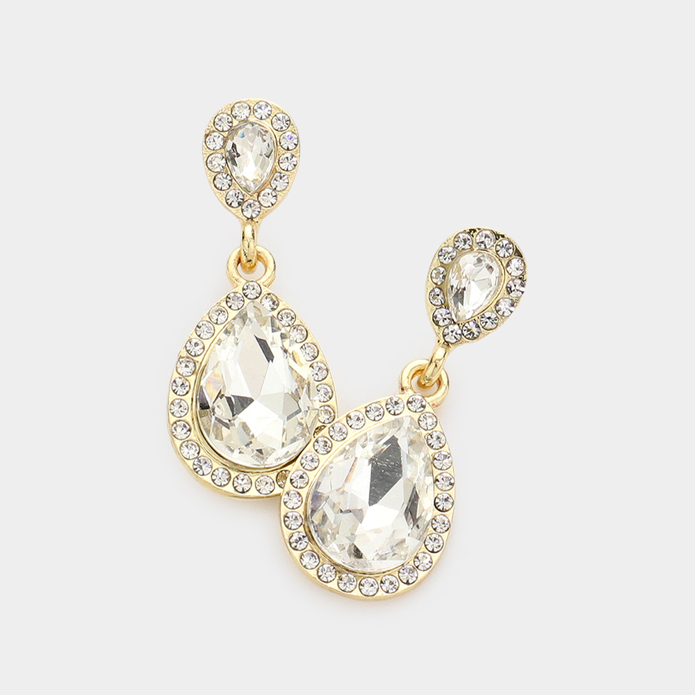 Double Teardrop Stone Evening Earrings