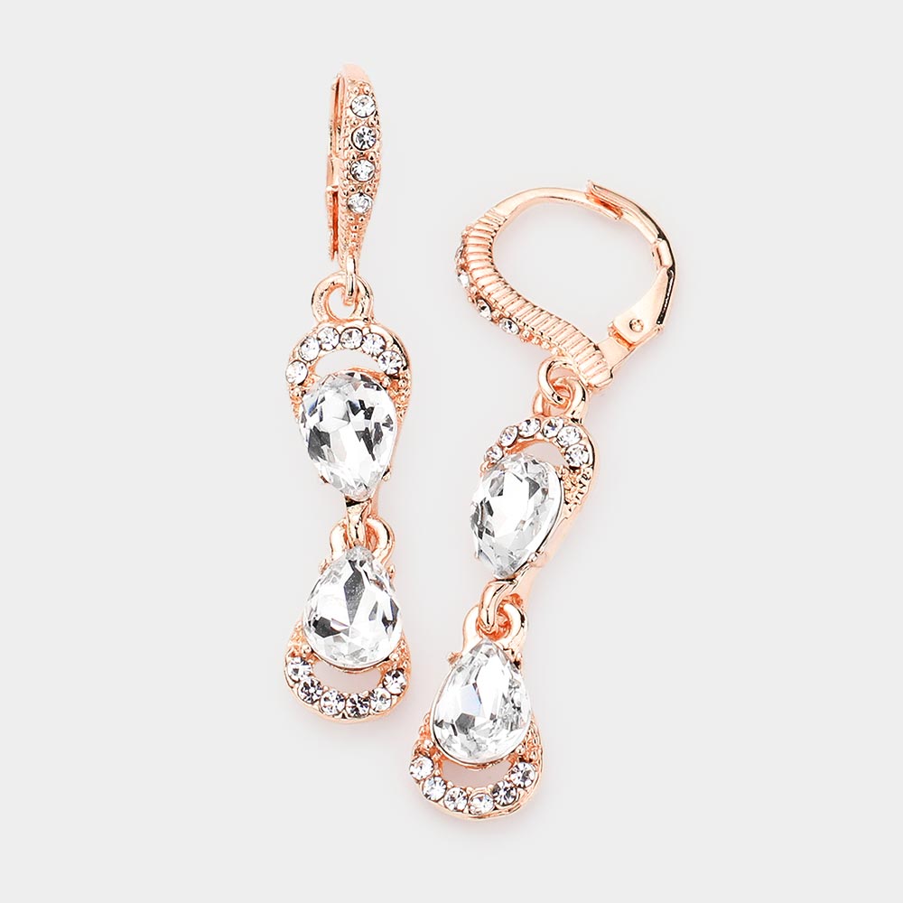 Double Teardrop Stone Link Dangle Lever Back Evening Earrings