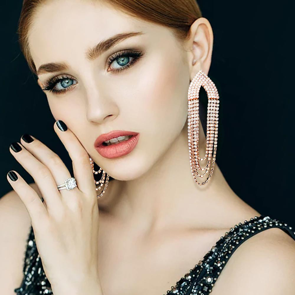 Rhinestone Paved Vine Dropdown Evening Earrings