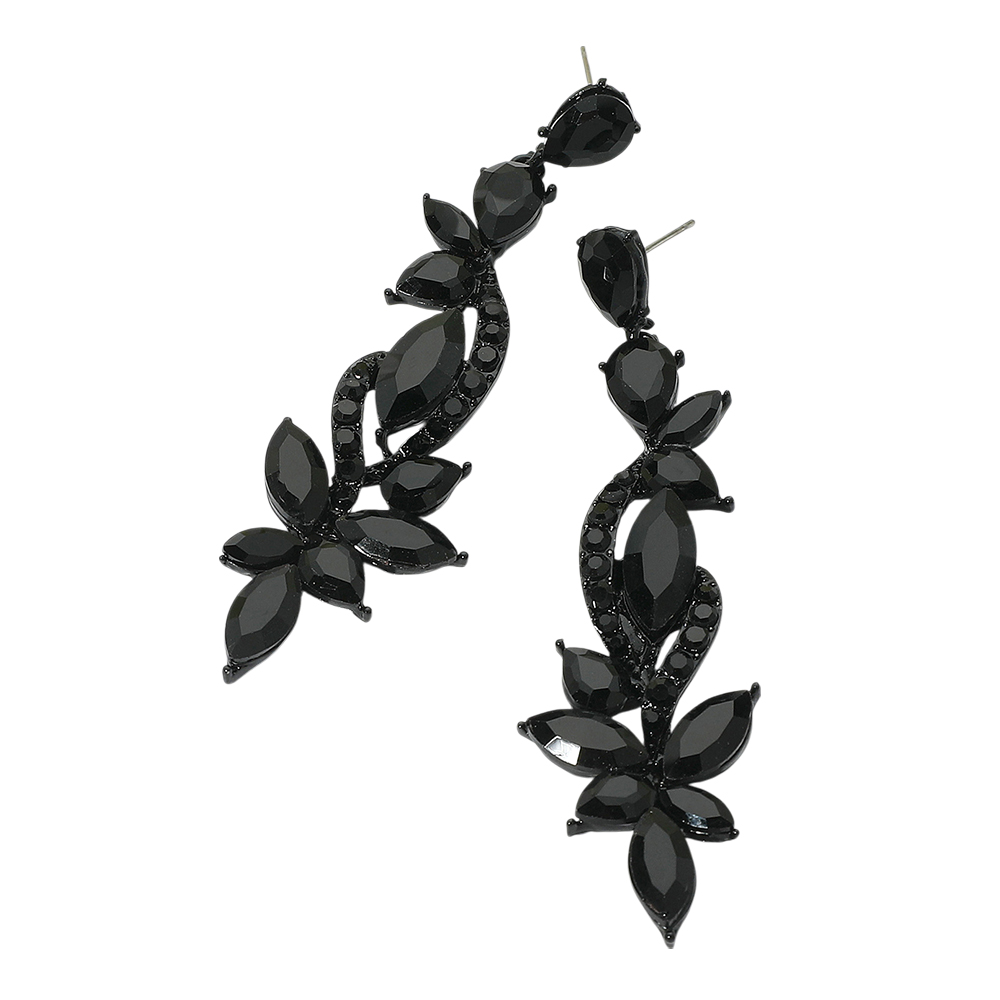 Details • Size : 0.9" X 3.25" • Post Back • Make a dazzling statement with these long drop earrings featuring a graceful floral-inspired design and shimmering crystal accents. Perfect for weddings, parties, or any event where you want to shine with sophisticated charm. • Lead and Nickel Compliant