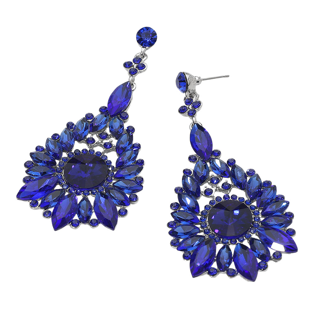 • Make an unforgettable impression with these statement teardrop crystal earrings. Designed with intricate faceted stones in a radiant arrangement, they capture light beautifully for a luxurious look—perfect for evening events, weddings, and glamorous nights out.