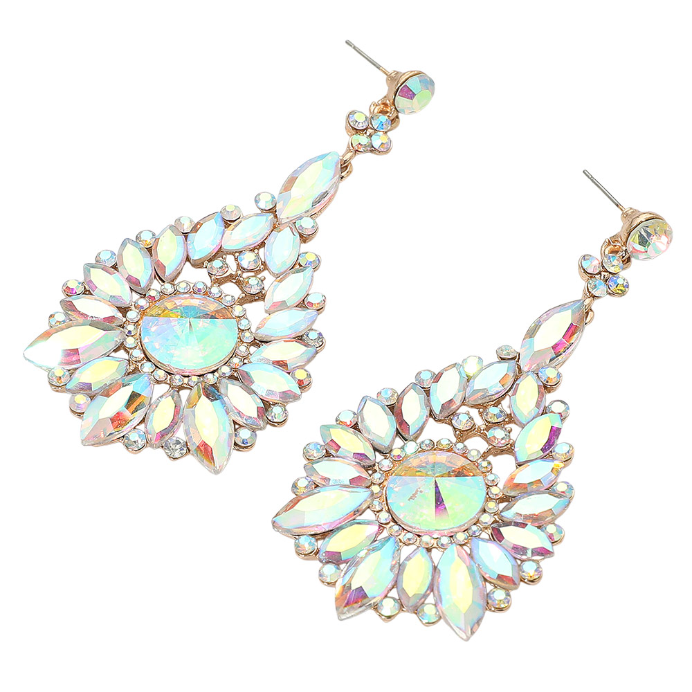 • Make an unforgettable impression with these statement teardrop crystal earrings. Designed with intricate faceted stones in a radiant arrangement, they capture light beautifully for a luxurious look—perfect for evening events, weddings, and glamorous nights out.