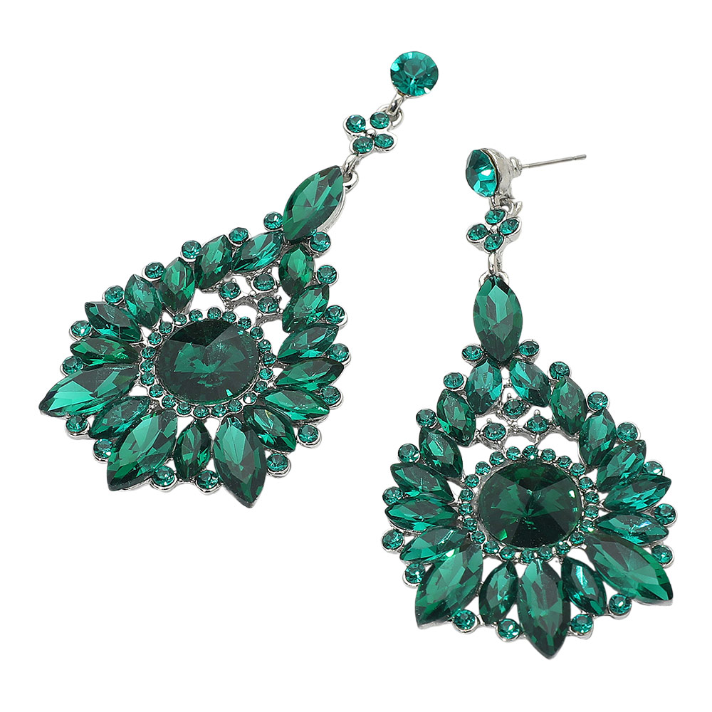 Teardrop Marquise Cluster Dangle Evening Earrings