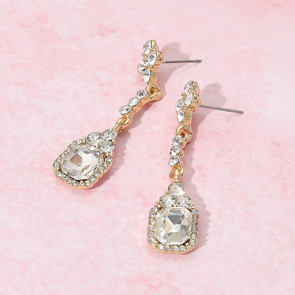 Elegant Rectangle Rhinestone Gem Drop Evening Earrings