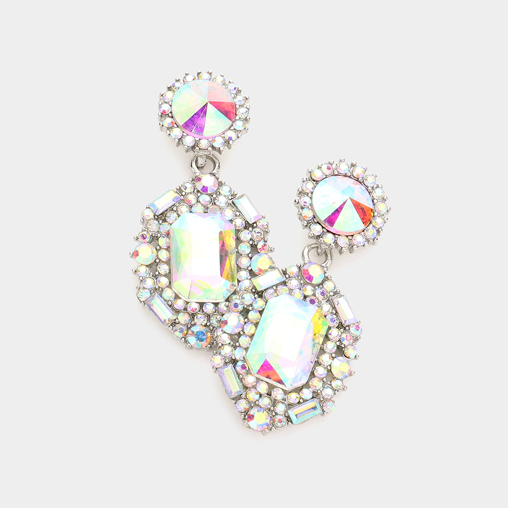 Emerald Cut Crystal Evening Earrings