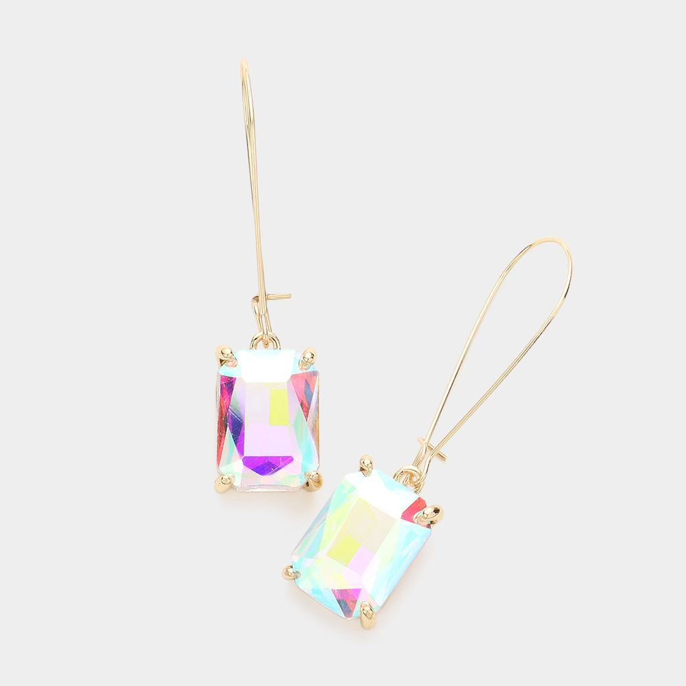 Emerald Cut Stone Dangle Evening Earrings