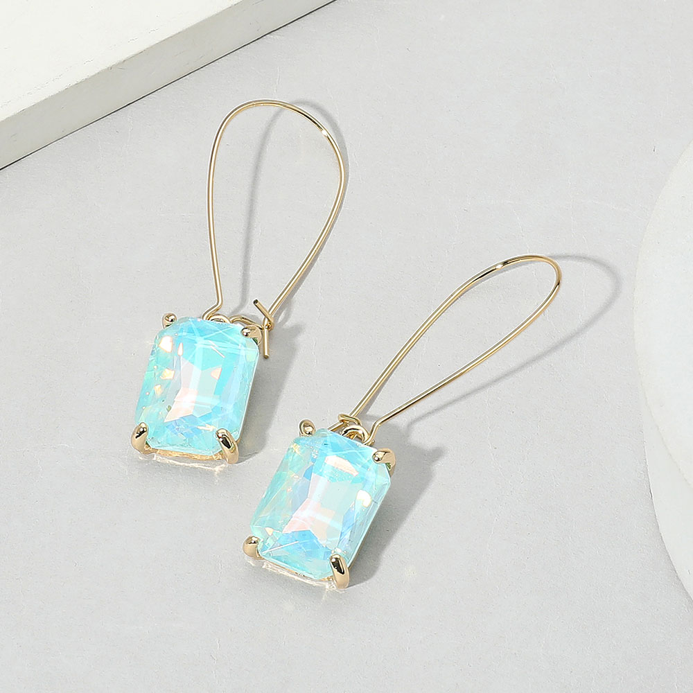 Rhinestone Embellished Metal Fishbone Dangle Earrings