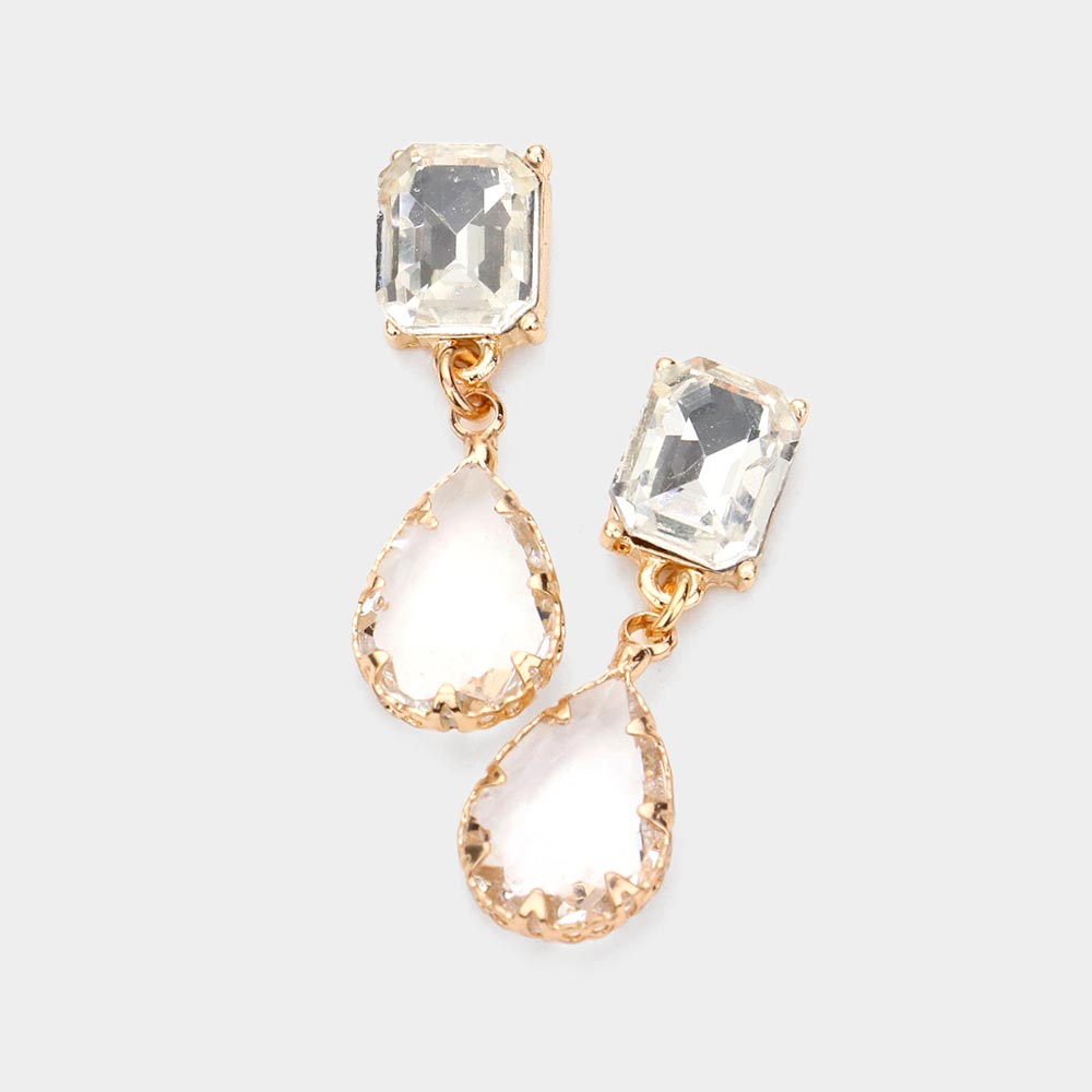 Emerald Cut Teardrop Stone Link Dangle Evening Earrings
