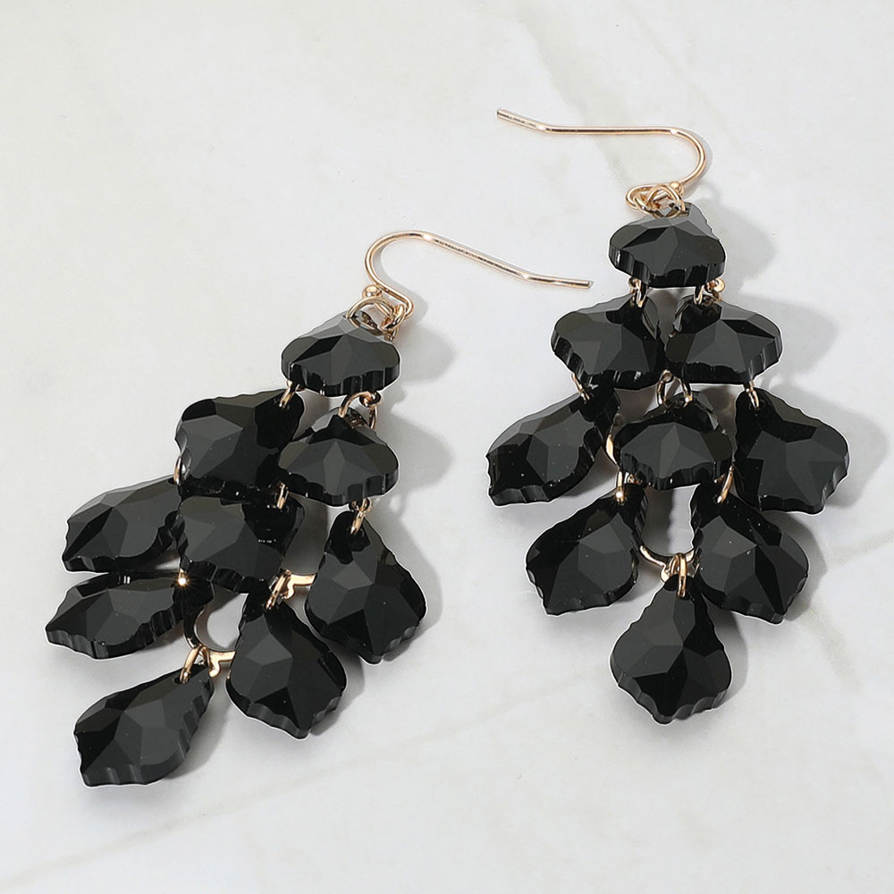Details • Size : 1.3" X 3" • Fish Hook Back • Striking dangle earrings featuring a cascading cluster of faceted teardrop shapes for bold movement and shimmer. Perfect for evening wear or dramatic daytime looks, these earrings add texture, depth, and a touch of elegance to any outfit with their layered silhouette. • Lead and Nickel Compliant
