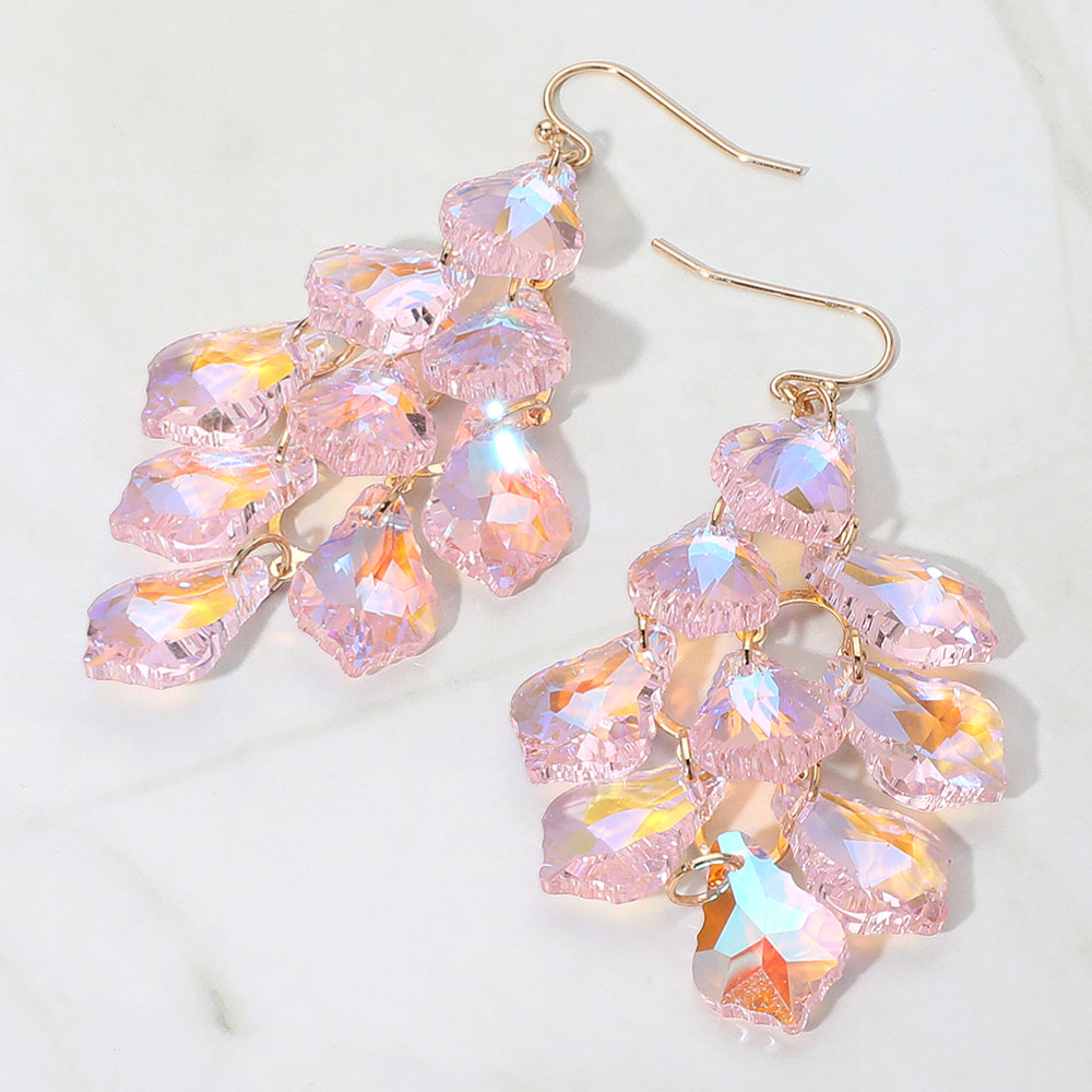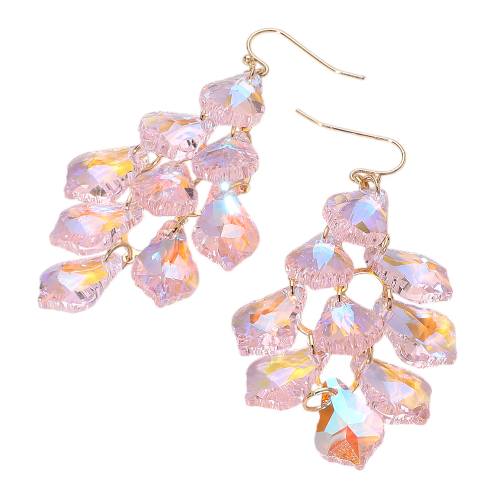 Faceted Teardrop Stone Chandelier Dangle Evening Earrings