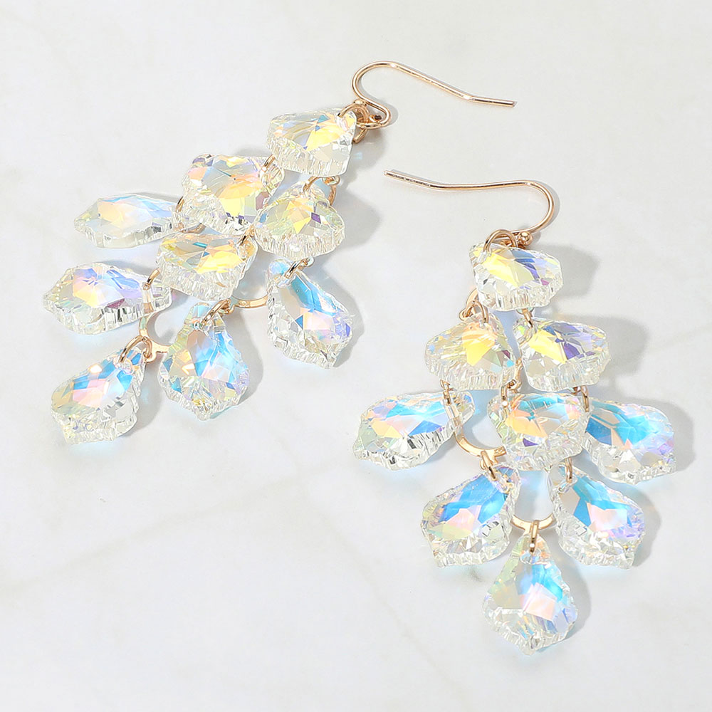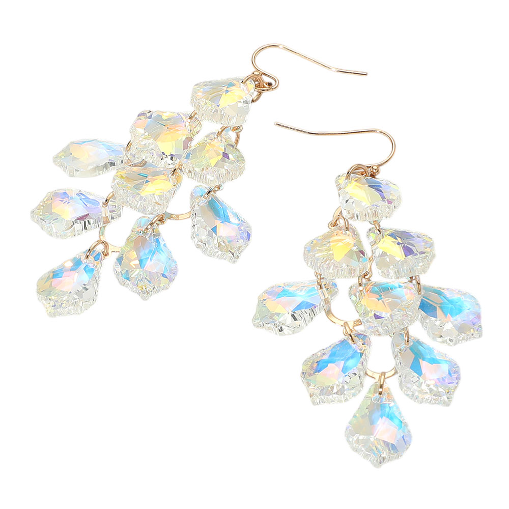 Faceted Teardrop Stone Chandelier Dangle Evening Earrings