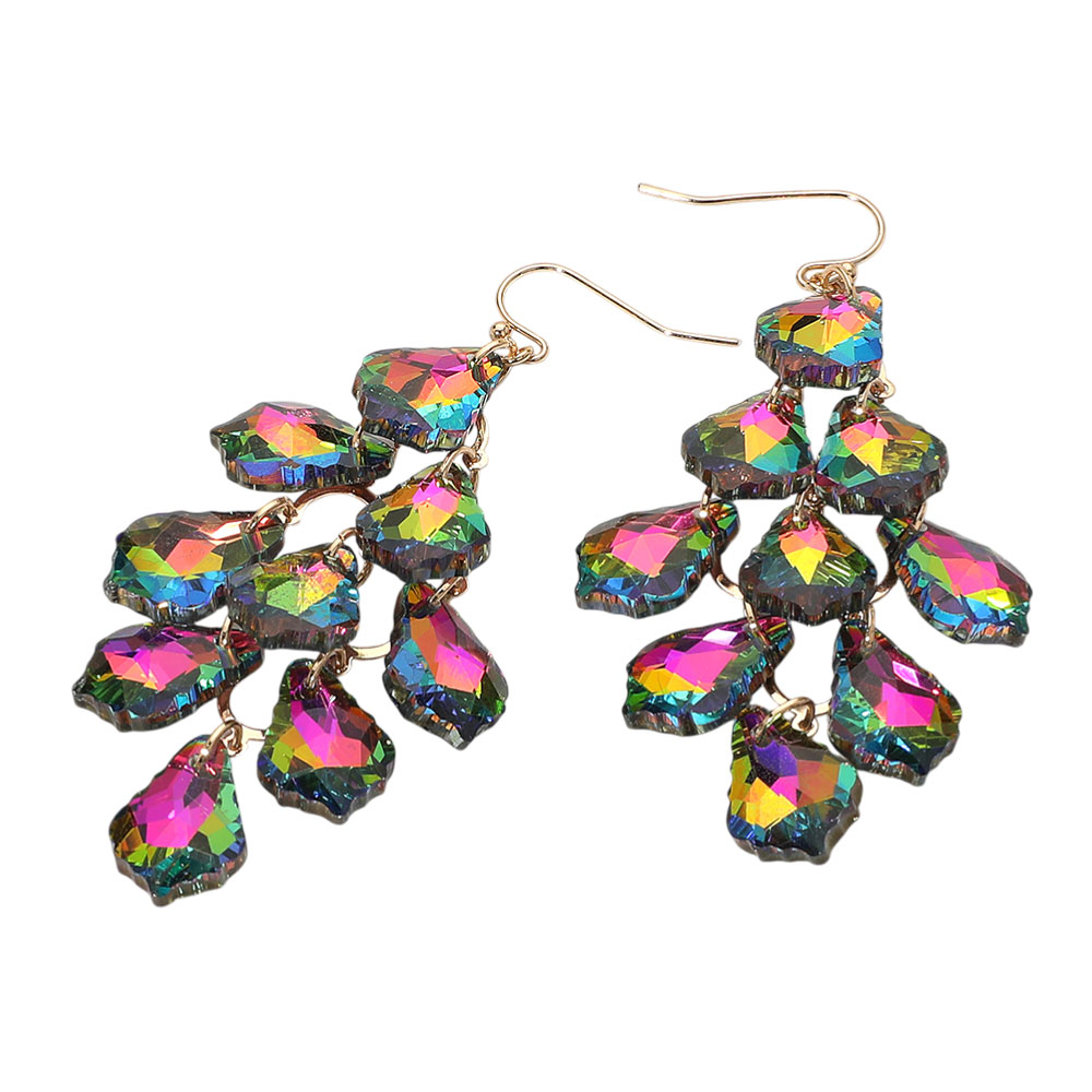 Faceted Teardrop Stone Chandelier Dangle Evening Earrings