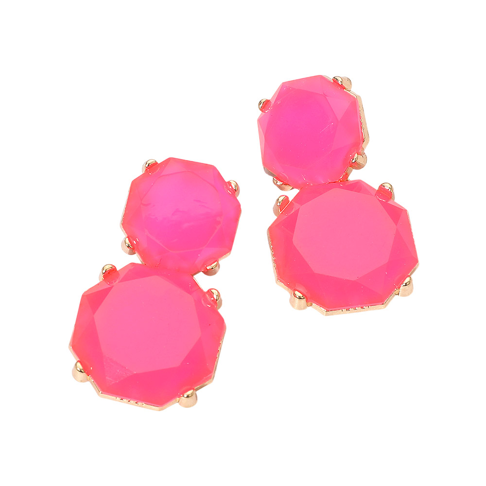 • These faceted double gem drop earrings feature a striking octagonal design that reflects light with every movement. Their elegant, layered silhouette adds a refined touch, making them a standout accessory for both casual and formal occasions.
