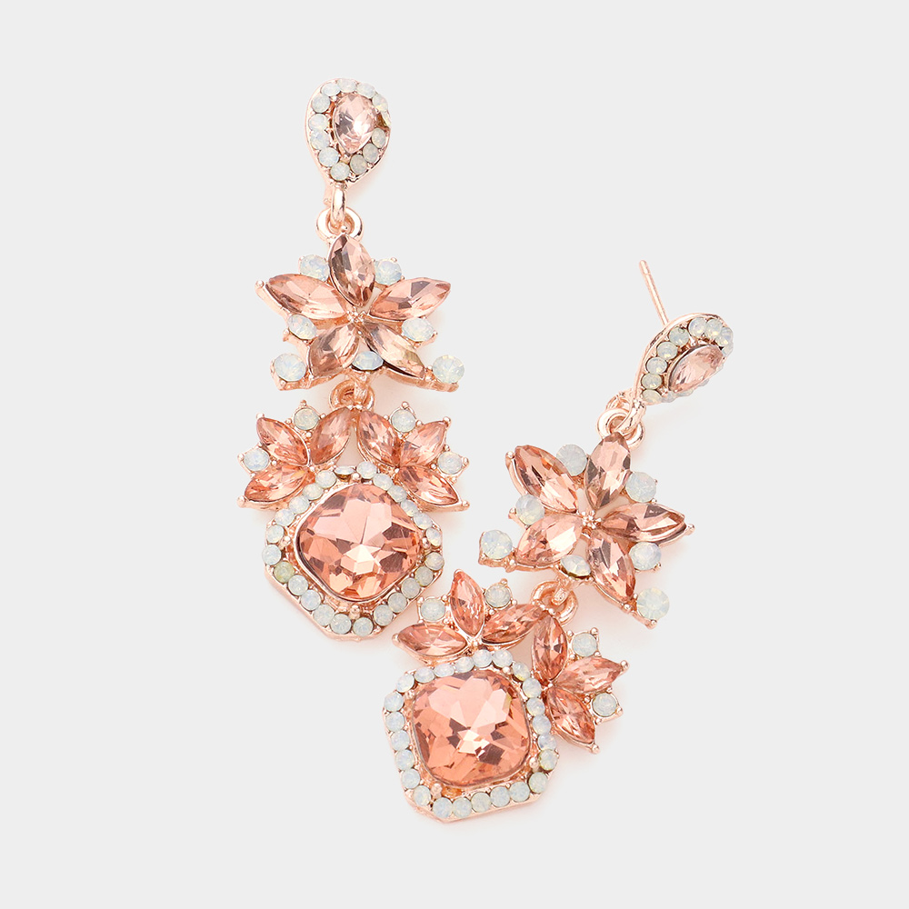 Floral Glass Stone Drop Evening Earrings