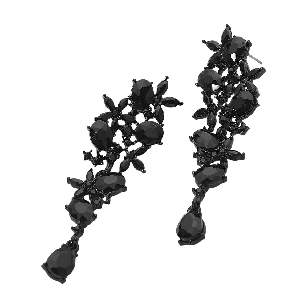 Floral Gem Cluster Drop Evening Earrings Floral Gem Cluster Drop Evening Earrings
