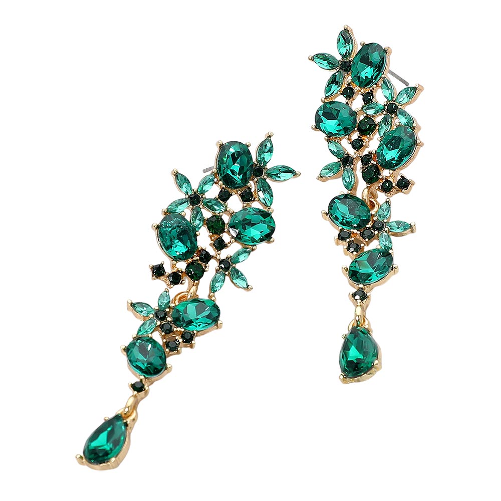 Floral Gem Cluster Drop Evening Earrings