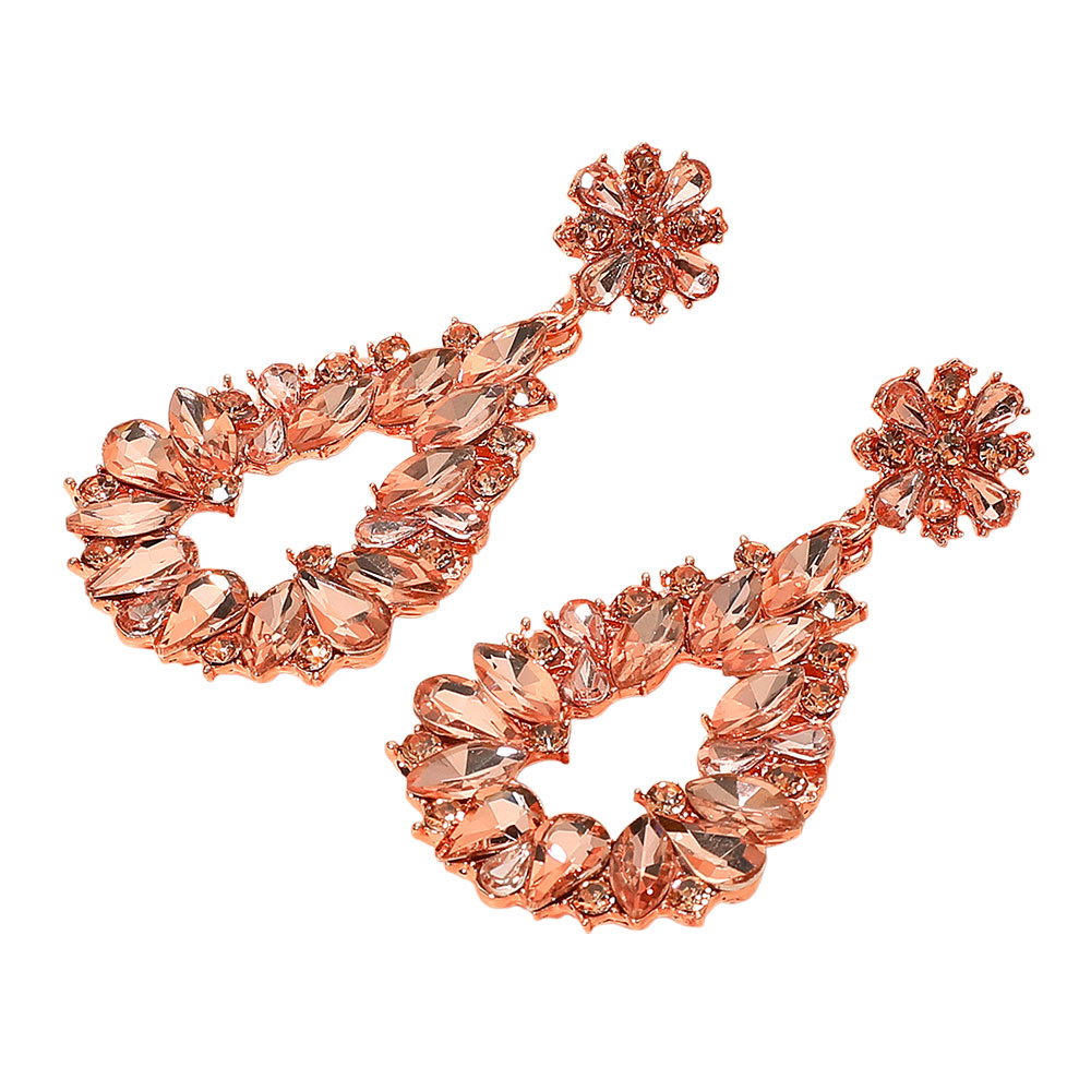 Details • Size : 1.25" X 2.75" • Post Back • Elegant teardrop earrings with intricate floral design and faceted accents. Ideal for weddings, galas, and formal events where standout accessories complete your polished look. • Lead and Nickel Compliant