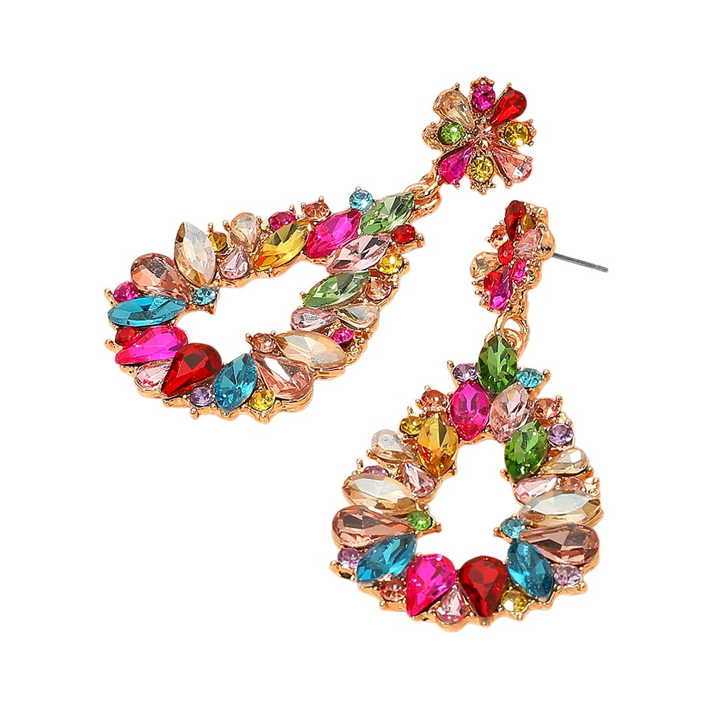 Floral Marquise Teardrop Stone Cluster Accent Dangle Evening Earrings Floral Marquise Teardrop Stone Cluster Accent Dangle Evening Earrings