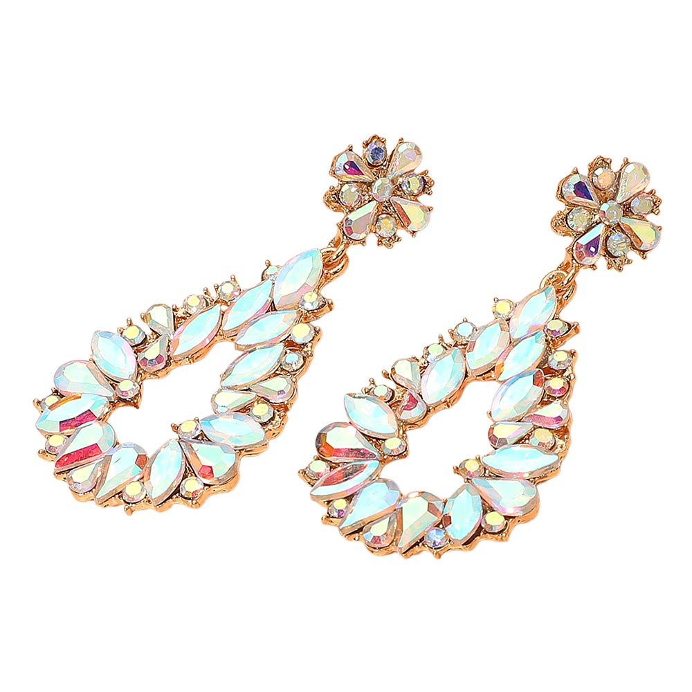 Floral Marquise Teardrop Stone Cluster Accent Dangle Evening Earrings